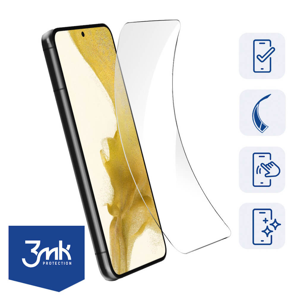 3MK ARC Plus Screen Protector - самовъзстановяващо се защитно покритие с извити ръбове за дисплея на Samsung Galaxy S22 (прозрачен)