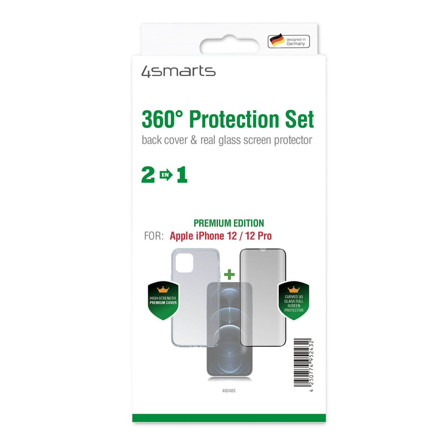 4smarts 360° Premium Protection Set - хибриден удароустойчив кейс и стъклено защитно покритие за дисплея на iPhone 12, iPhone 12 Pro (прозрачен)