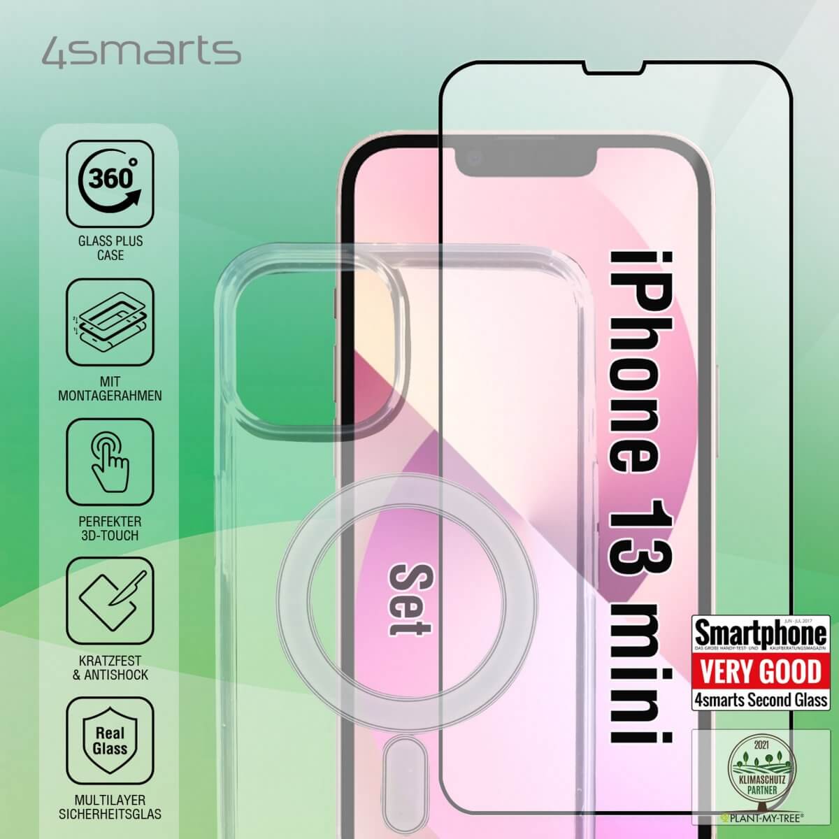 4smarts 360° Premium Protection Set - хибриден удароустойчив кейс с MagSafe и стъклено защитно покритие за дисплея на iPhone 13 mini (прозрачен)