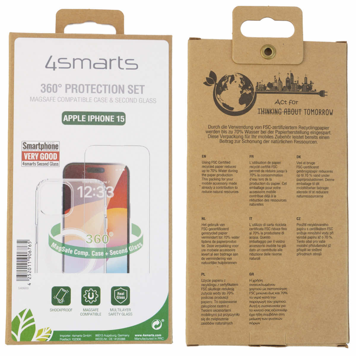 4smarts 360° Premium Protection Set - хибриден удароустойчив кейс с MagSafe и стъклено защитно покритие за дисплея на iPhone 15 (прозрачен)