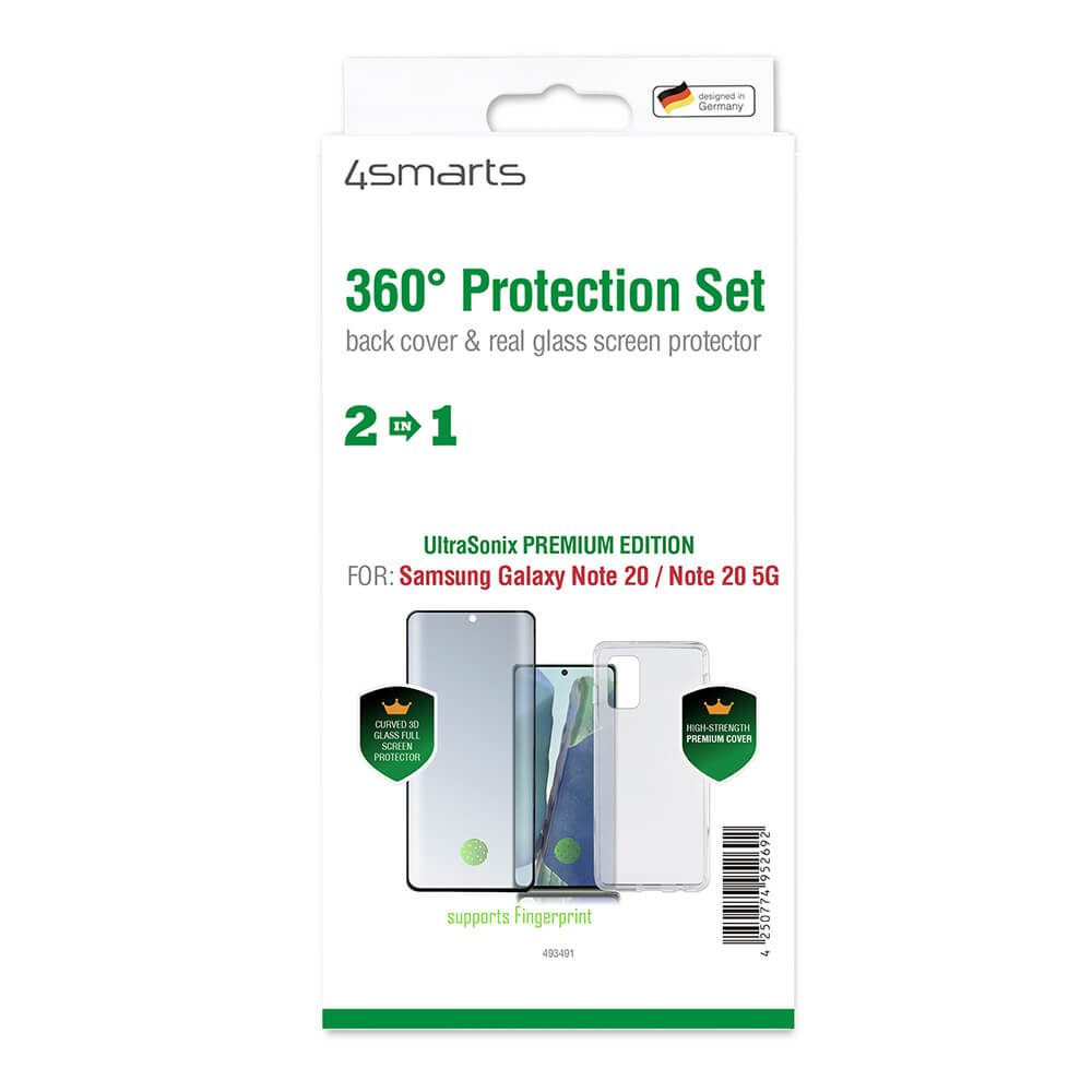 4smarts 360° Premium Protection Set UltraSonix - тънък силиконов кейс и стъклено защитно покритие за дисплея на Samusg Galaxy Note 20 (прозрачен)