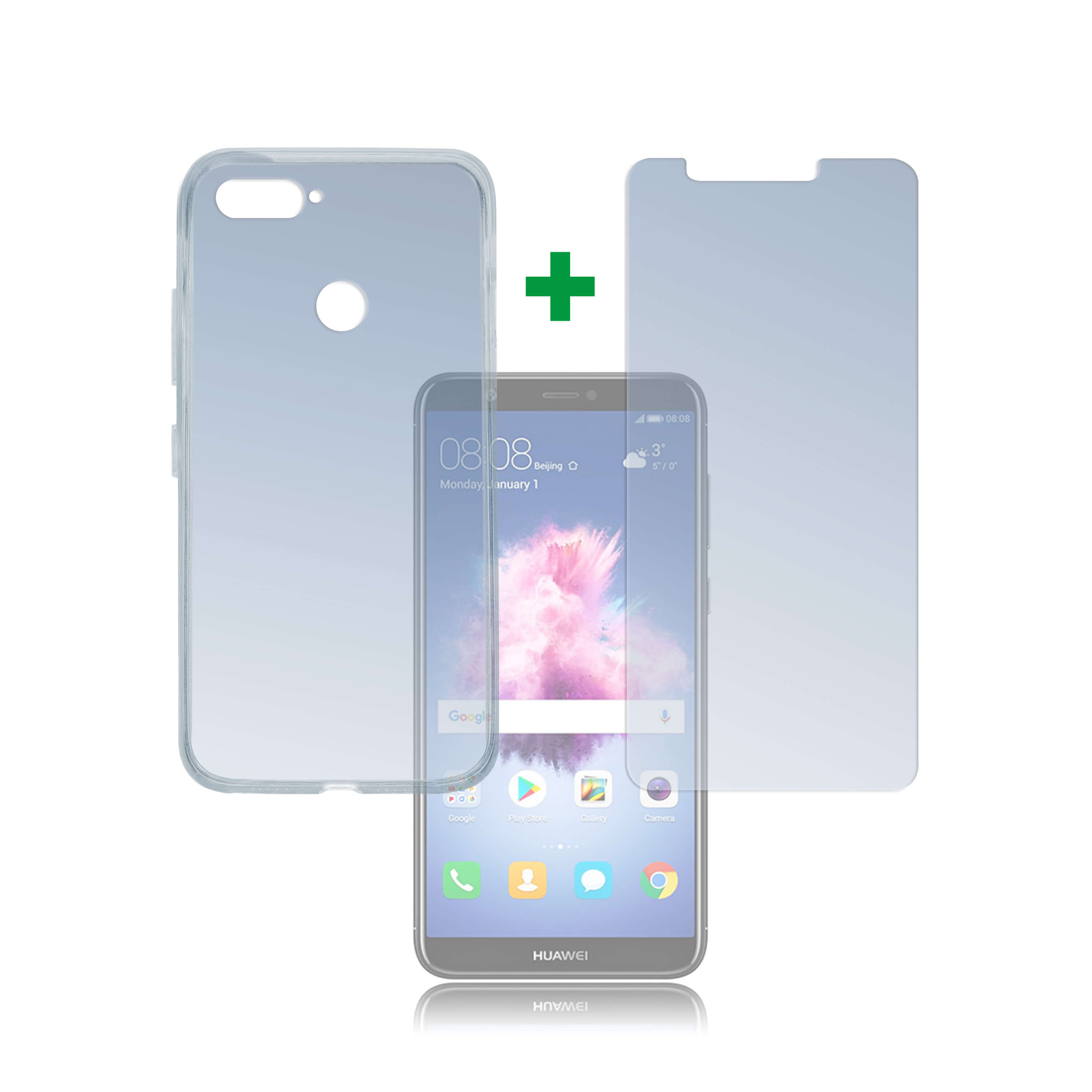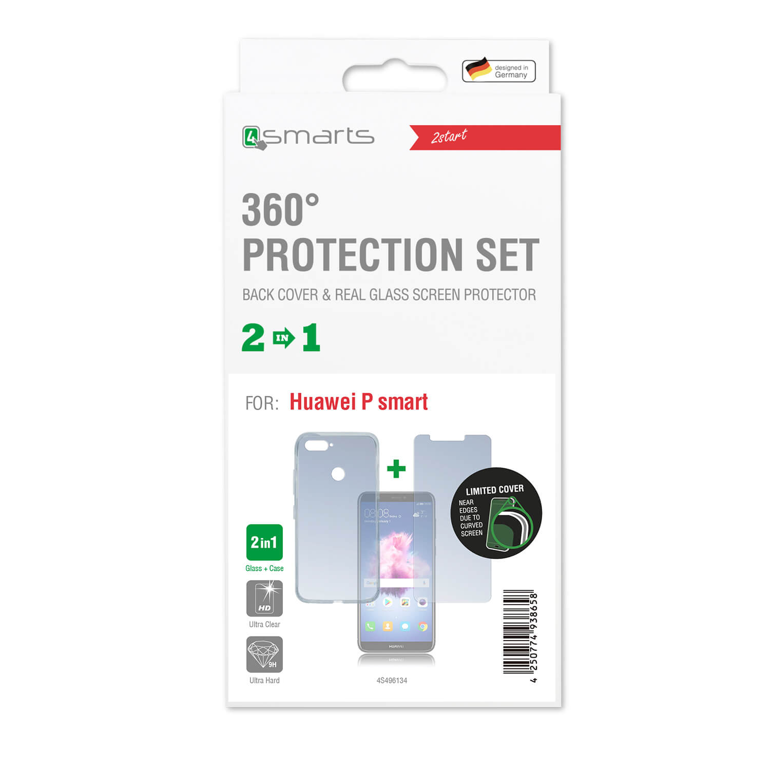 4smarts 360° Protection Set - тънък силиконов кейс и стъклено защитно покритие за дисплея на Huawei P Smart (прозрачен)
