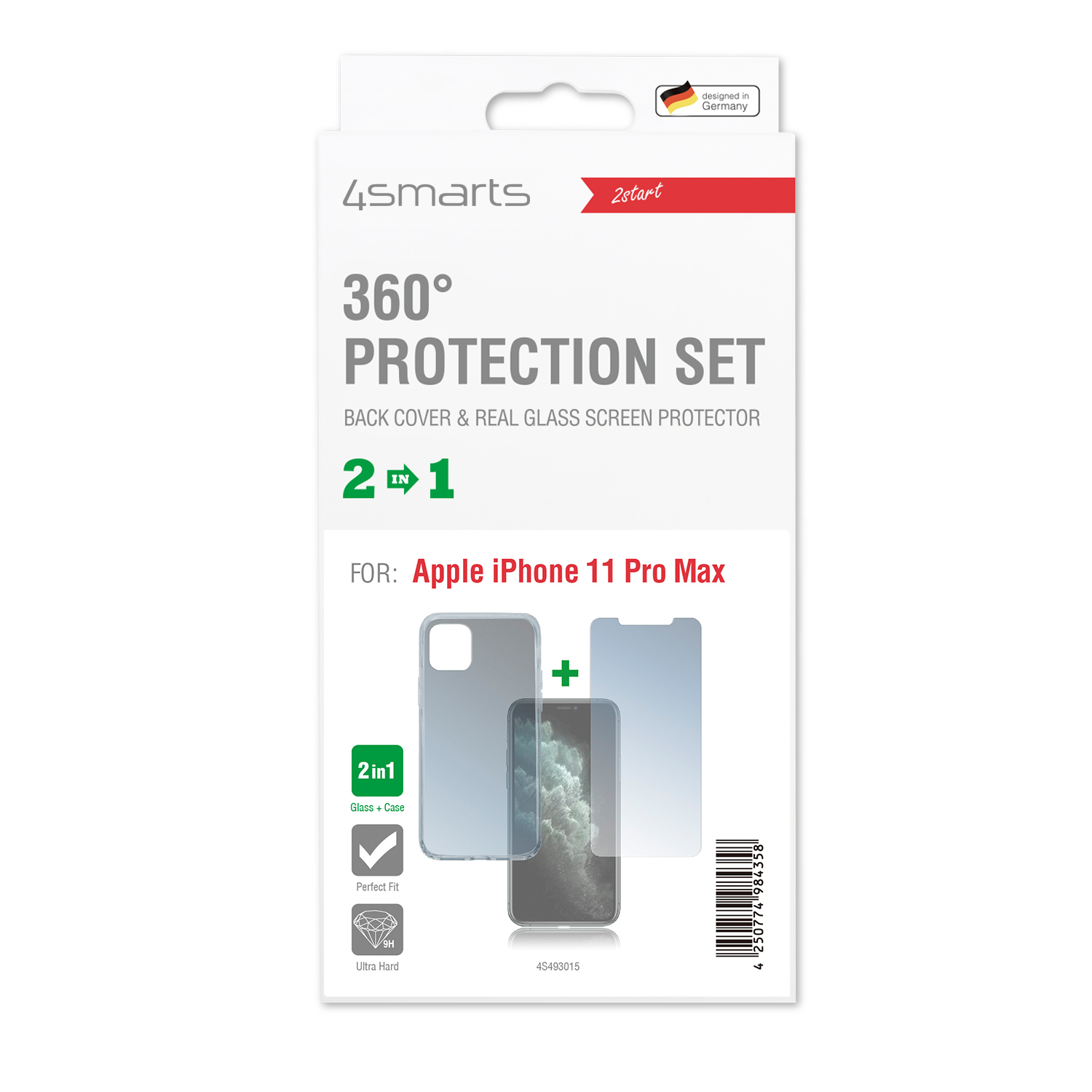 4smarts 360° Protection Set - тънък силиконов кейс и стъклено защитно покритие за дисплея на iPhone 11 Pro Max (прозрачен)