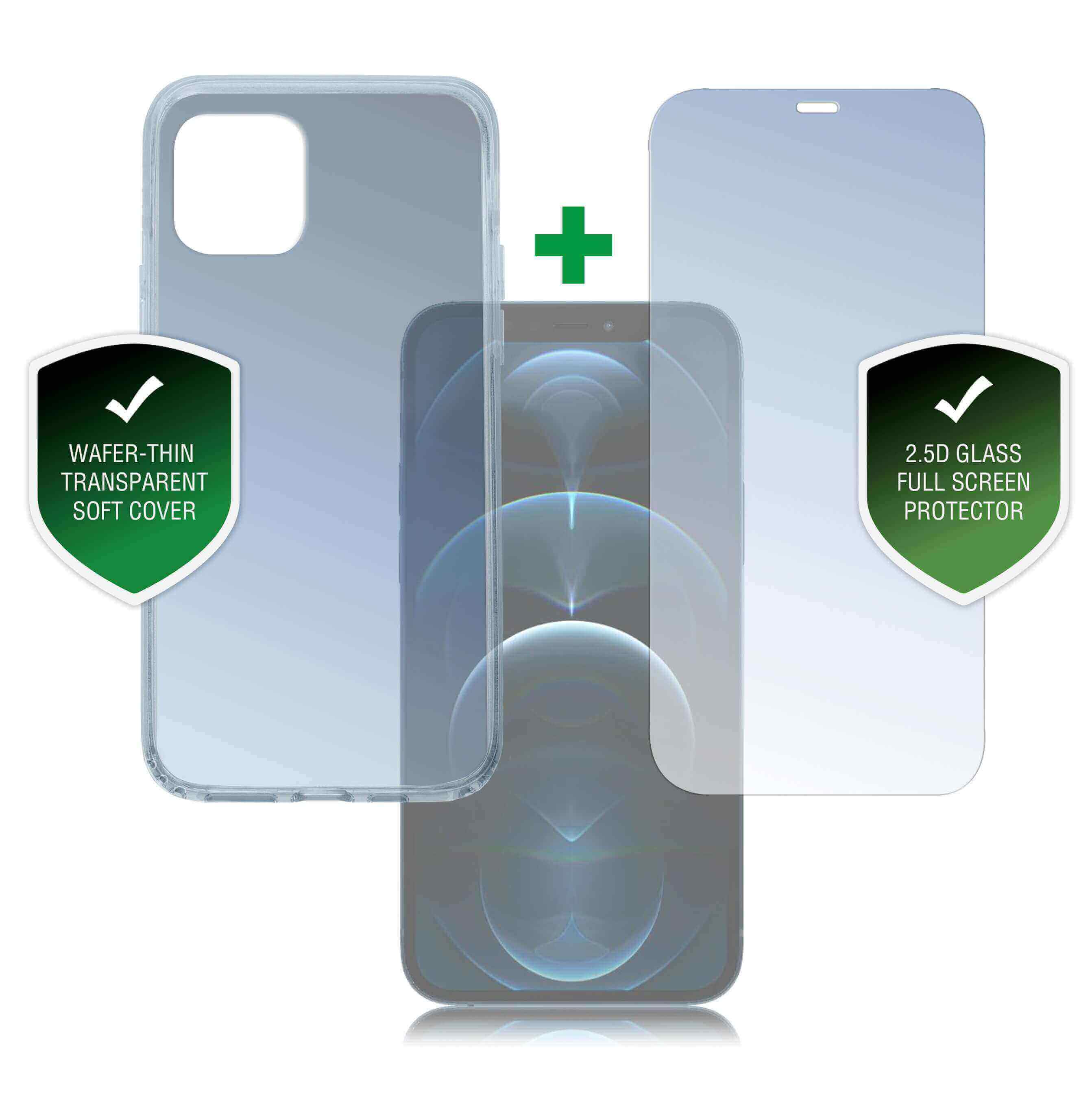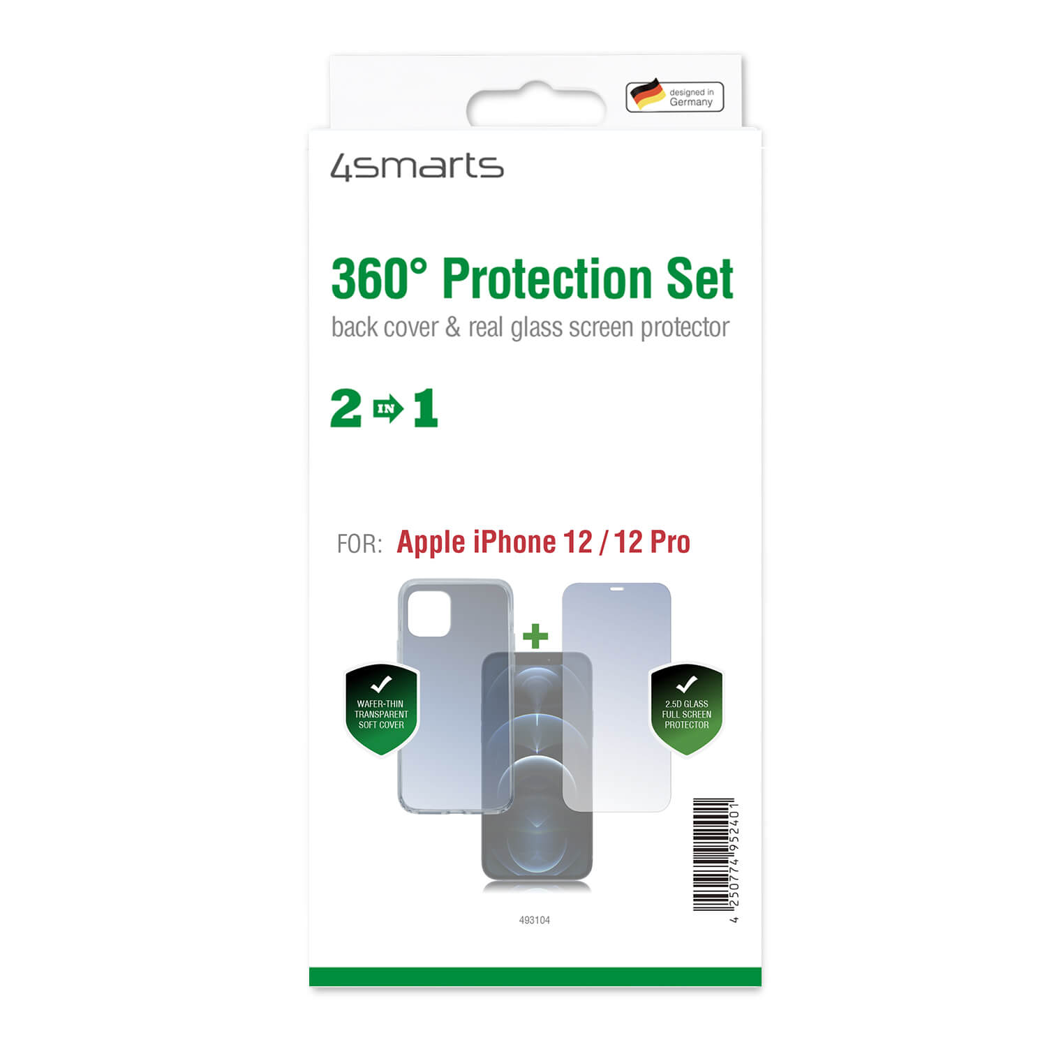 4smarts 360° Protection Set - тънък силиконов кейс и стъклено защитно покритие за дисплея на iPhone 12, iPhone 12 Pro (прозрачен)