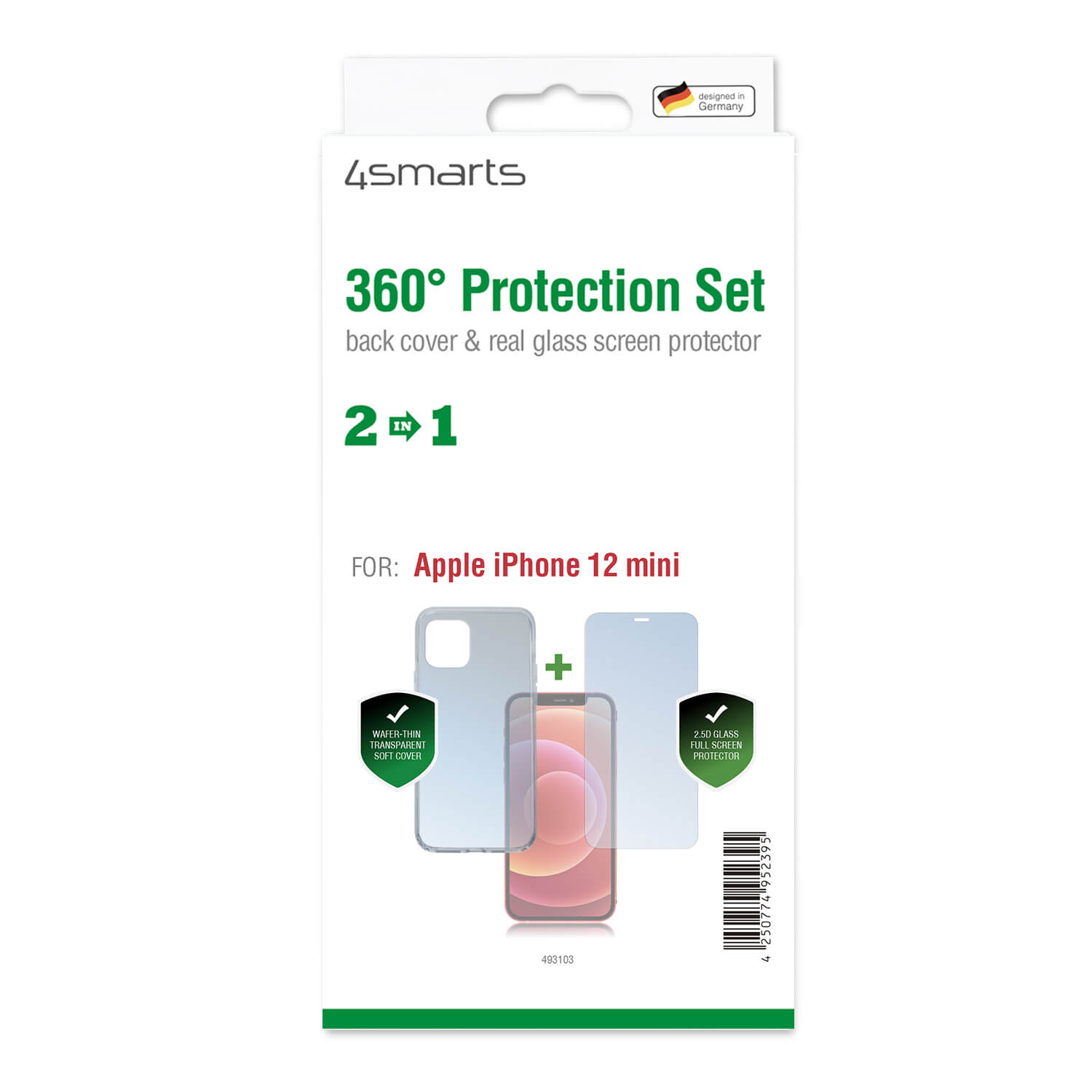 4smarts 360° Protection Set - тънък силиконов кейс и стъклено защитно покритие за дисплея на iPhone 12 mini (прозрачен)
