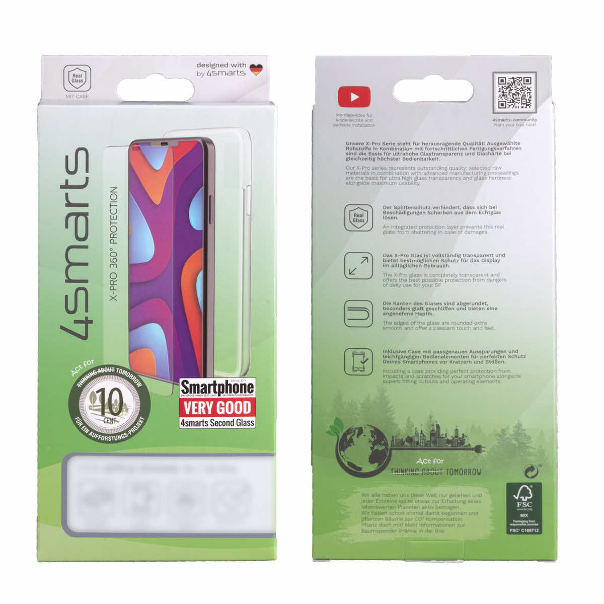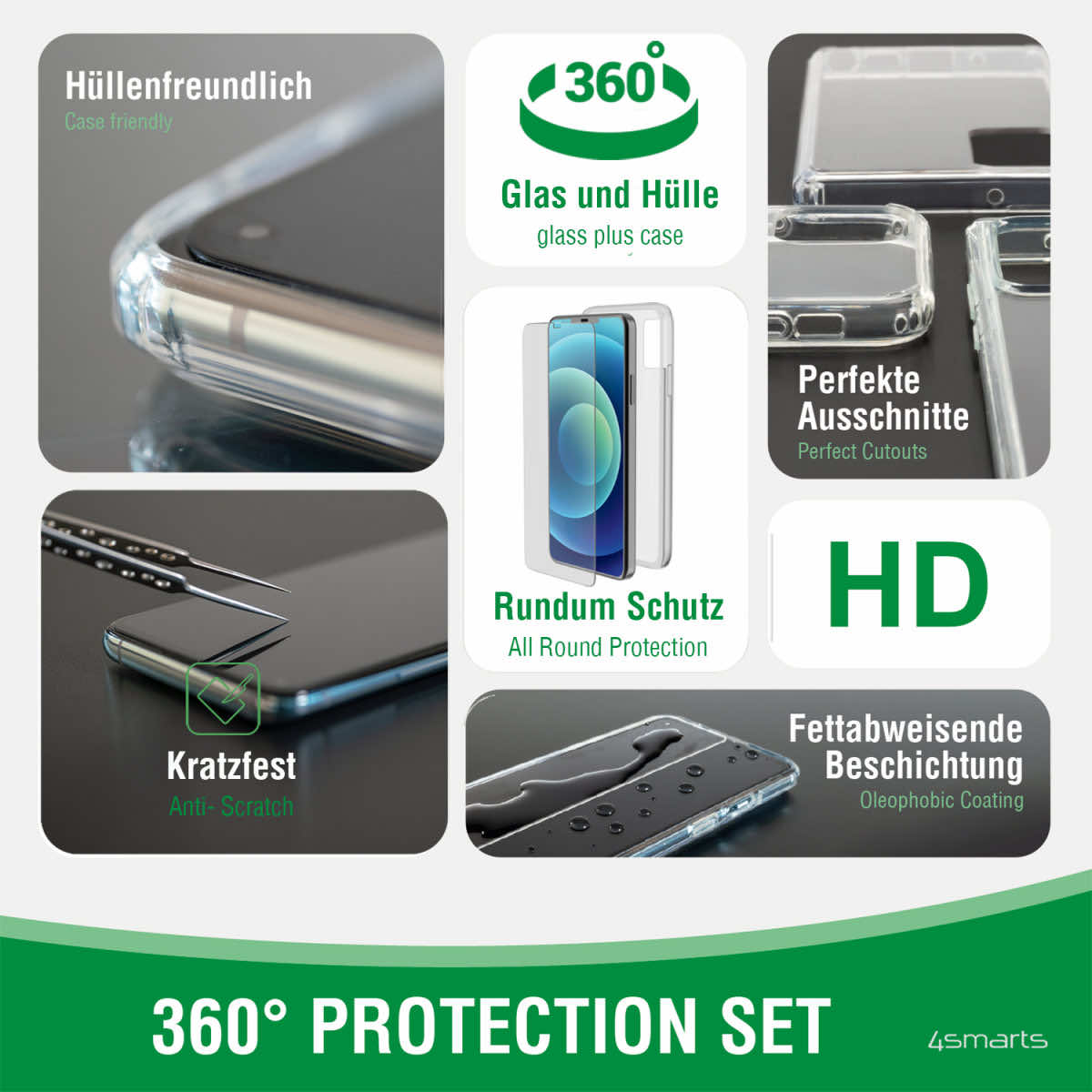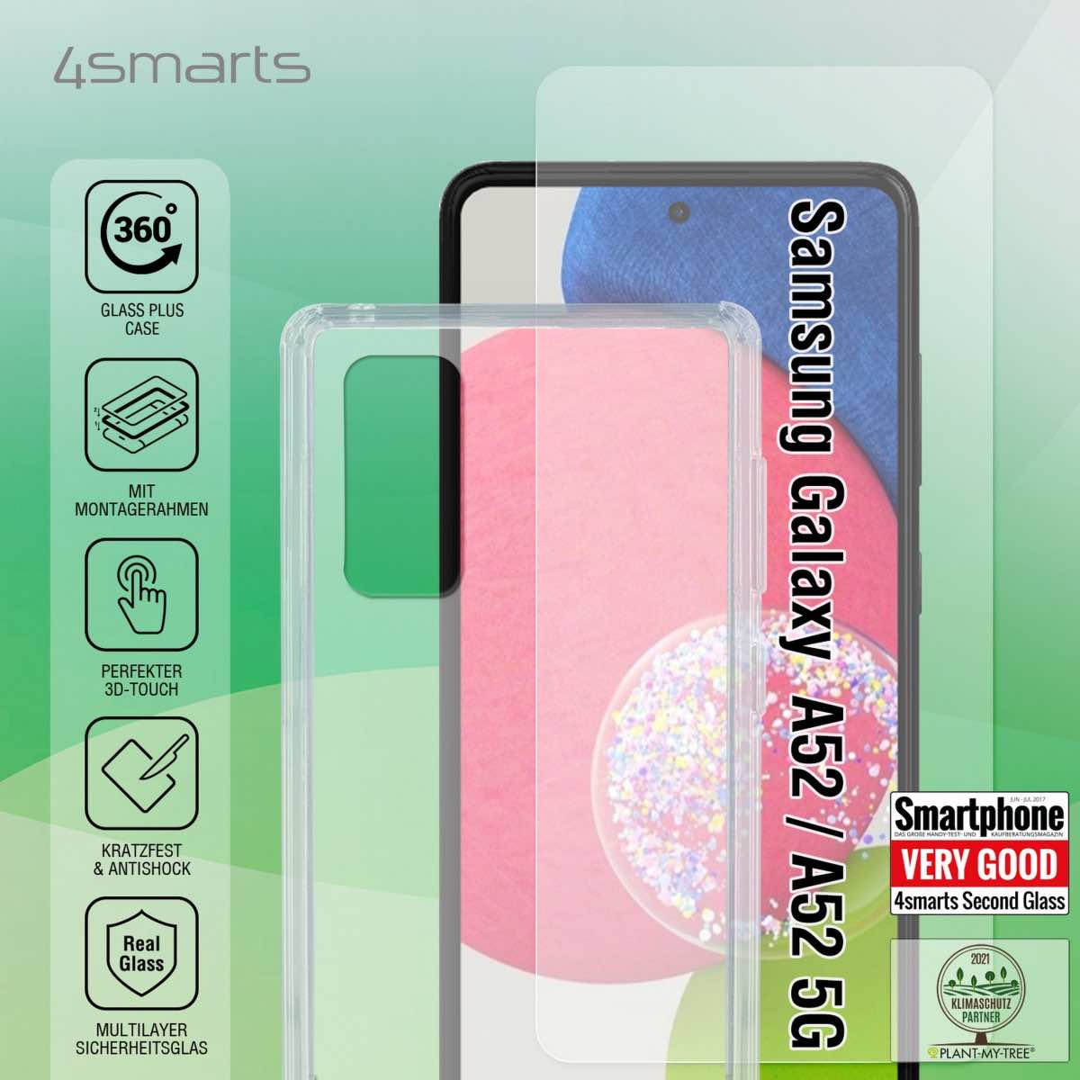 4smarts 360° Starter Set X-Pro Glass - тънък силиконов кейс и стъклено защитно покритие за дисплея на Samsung Galaxy A52, A52 5G, A52s 5G (прозрачен)