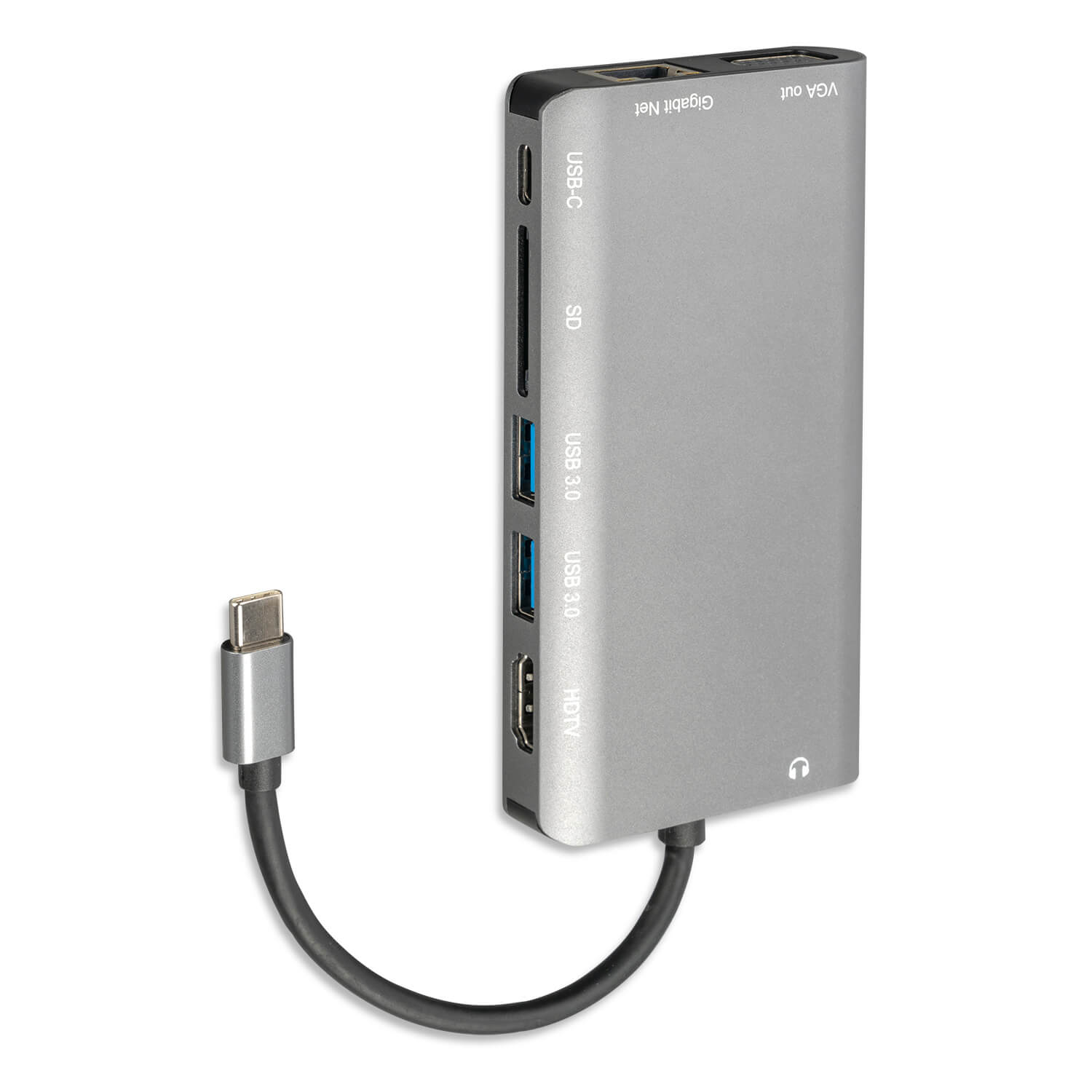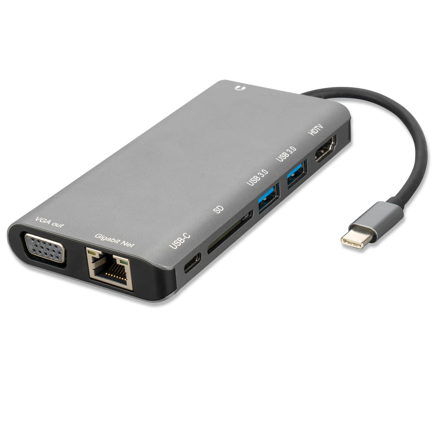 4smarts 8in1 4K USB-C Hub - мултифункционален хъб с Ethernet, HDMI, VGA, USB-C, USB 3.0 и четец за карти за MacBook (тъмносив)