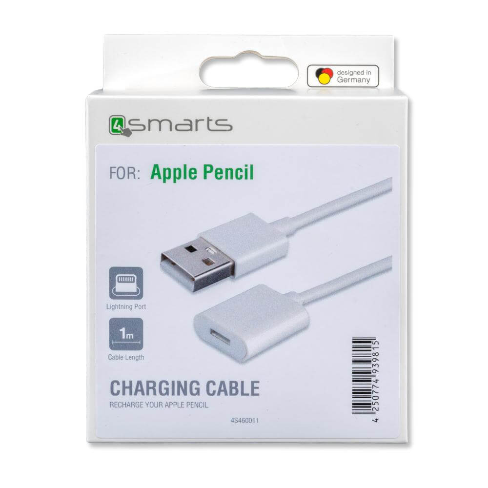 4smarts Apple Pencil Charging Cable - кабел (USB към женски Lightning) за зареждане на Apple Pencil (1st Gen) (бял)