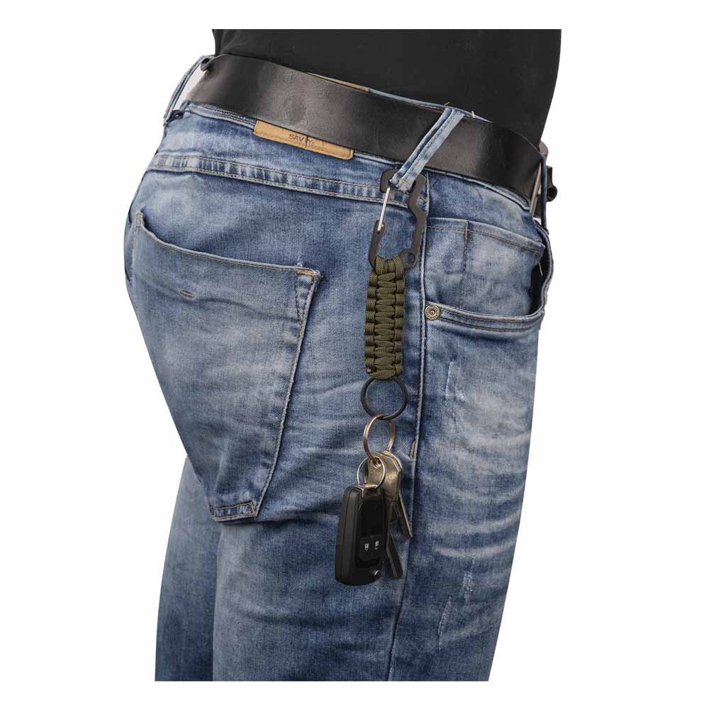 - Метален карабинер с висококачествена здрава оплетка от парашутна корда