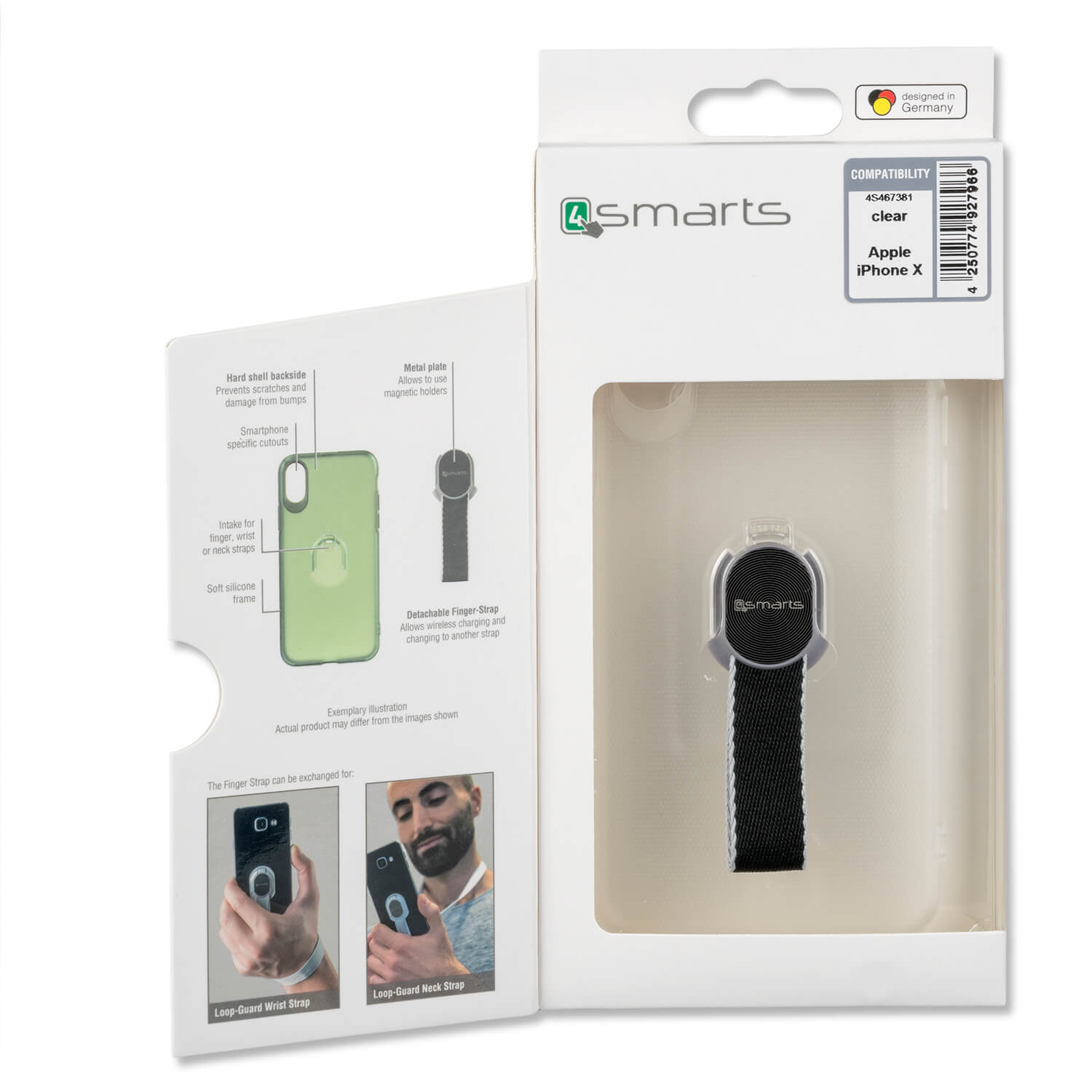4smarts Clip-On Cover Loop-Guard - удароустойчив хибриден кейс с каишка за задържане за iPhone XS, iPhone X (прозрачен)