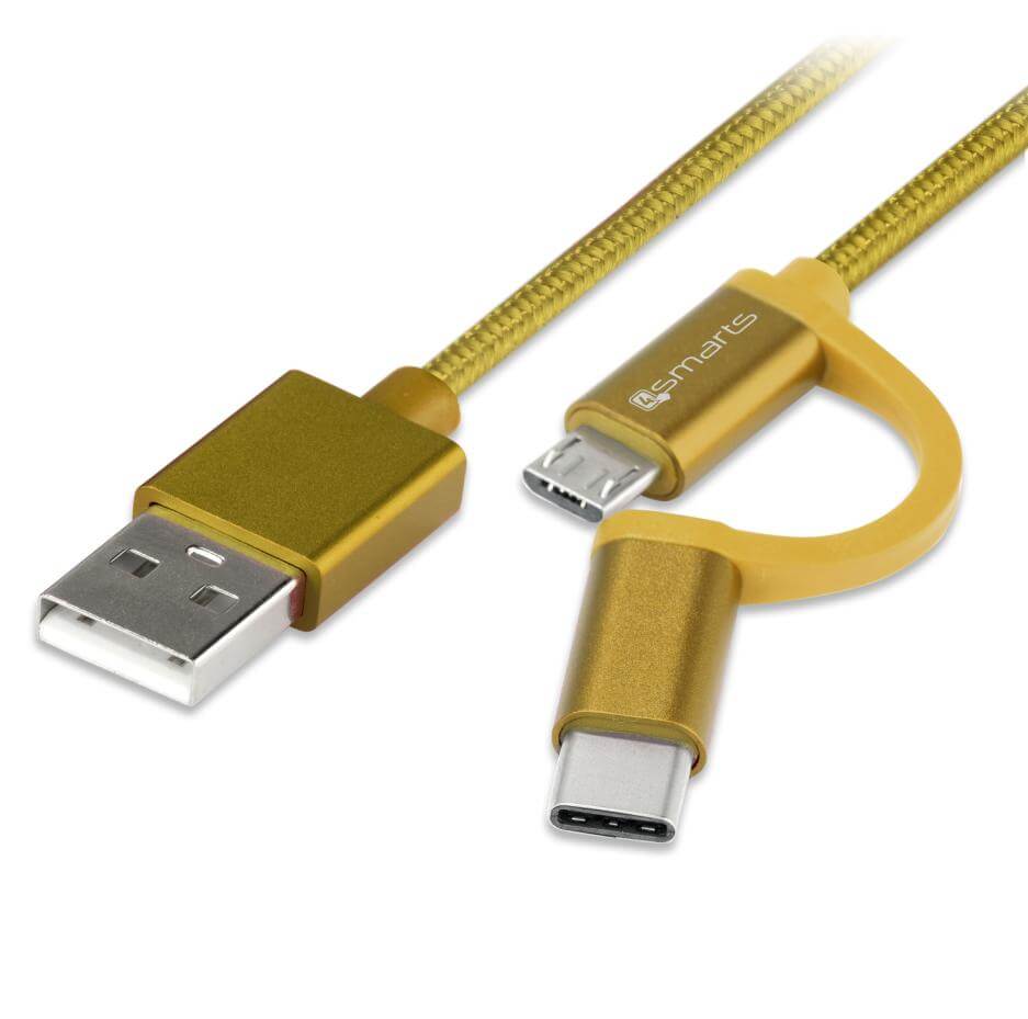 4smarts ComboCord MicroUSB + USB-C cable - плосък качествен кабел за microUSB и USB-C стандарти 100 см. (златист)