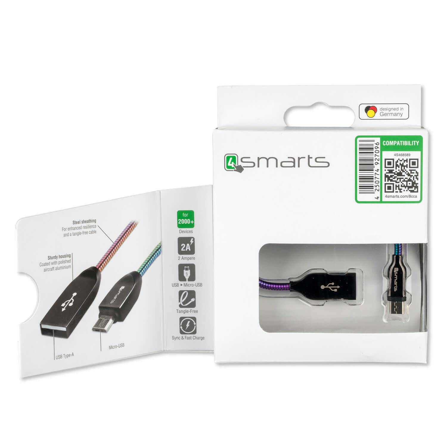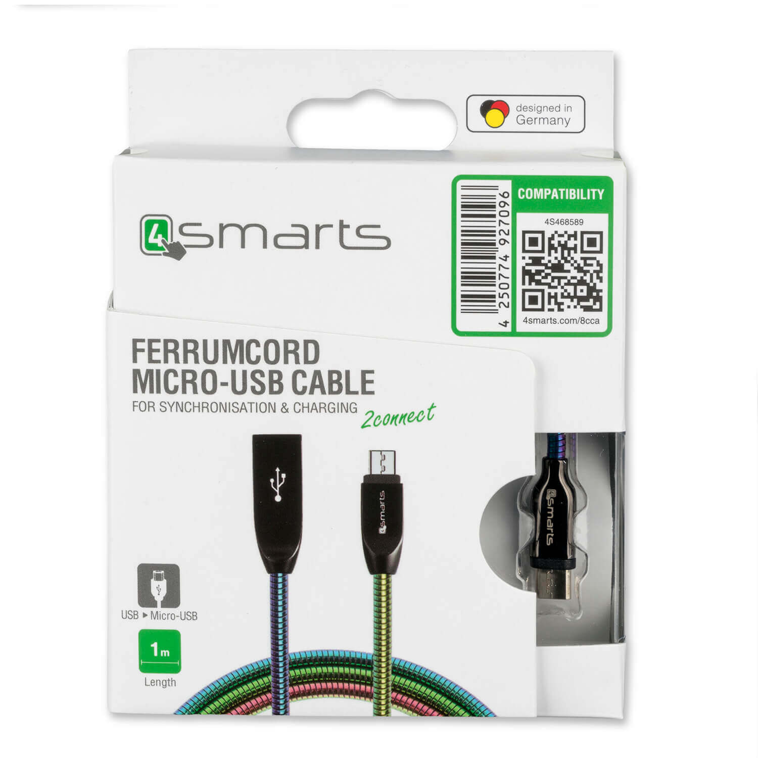 4smarts FerrumCord Stainless Steel MicroUSB Data Cable 1m. - компактен microUSB кабел с оплетка от неръждаема стомана (хамелеон)