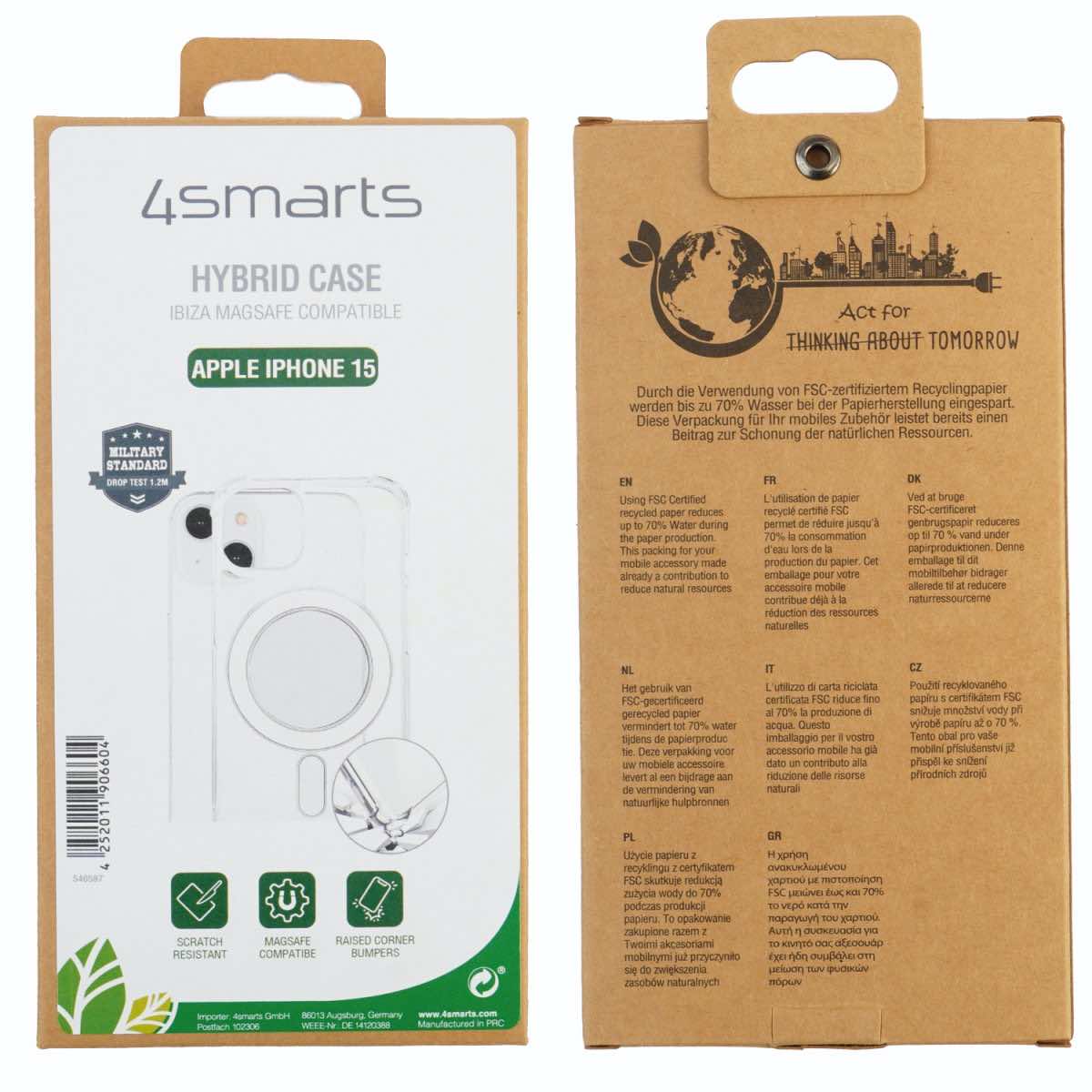 4smarts Hybrid Ibiza MagSafe Case - хибриден удароустойчив кейс с MagSafe за iPhone 15 (прозрачен)