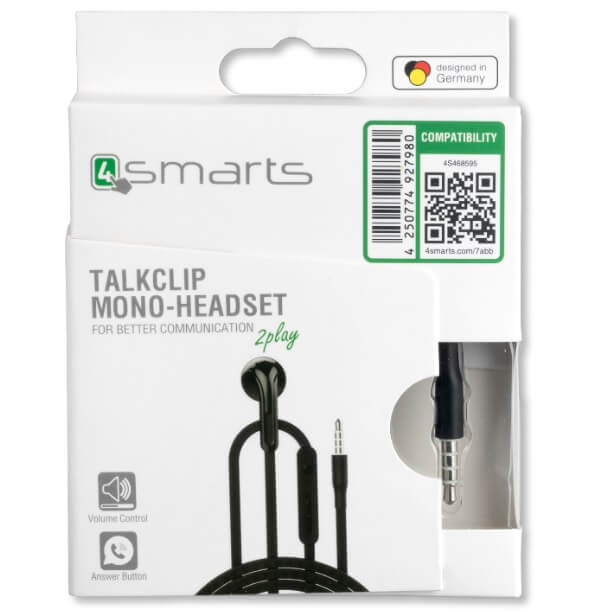 4smarts In-Ear Mono Headset TalkClip - слушалки с управление на звука и микрофон за мобилни устройства (черен)