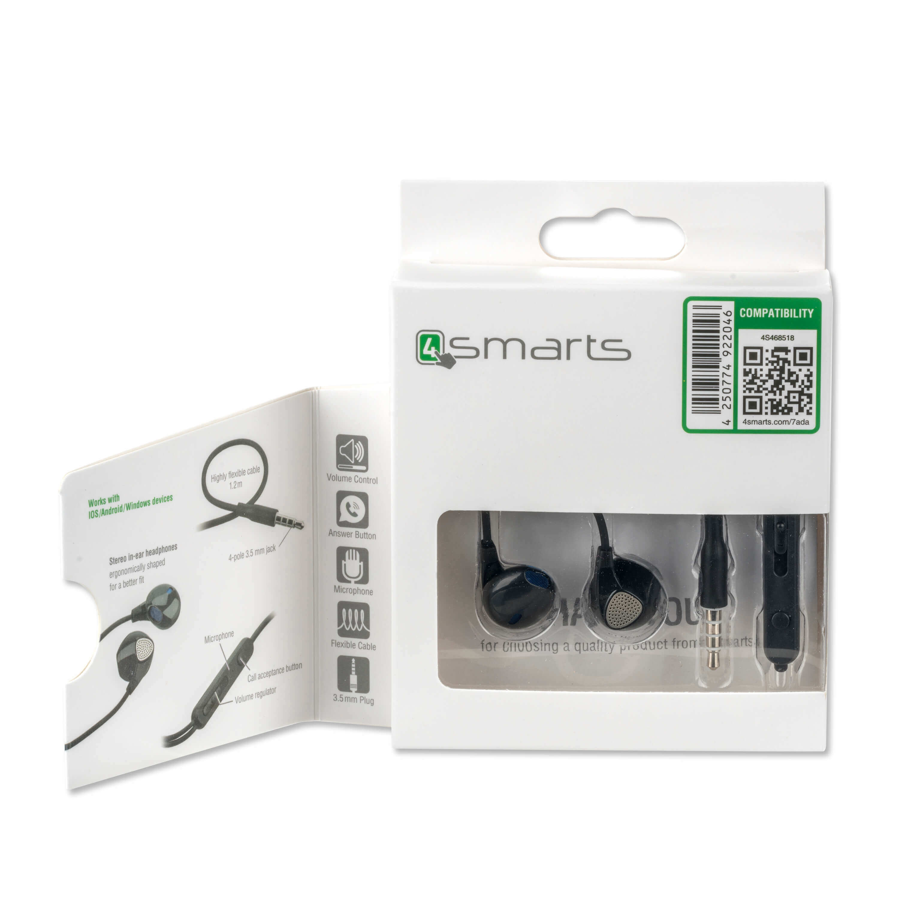 4smarts In-Ear Stereo Headset Melody - слушалки с управление на звука и микрофон за мобилни устройства (черен)