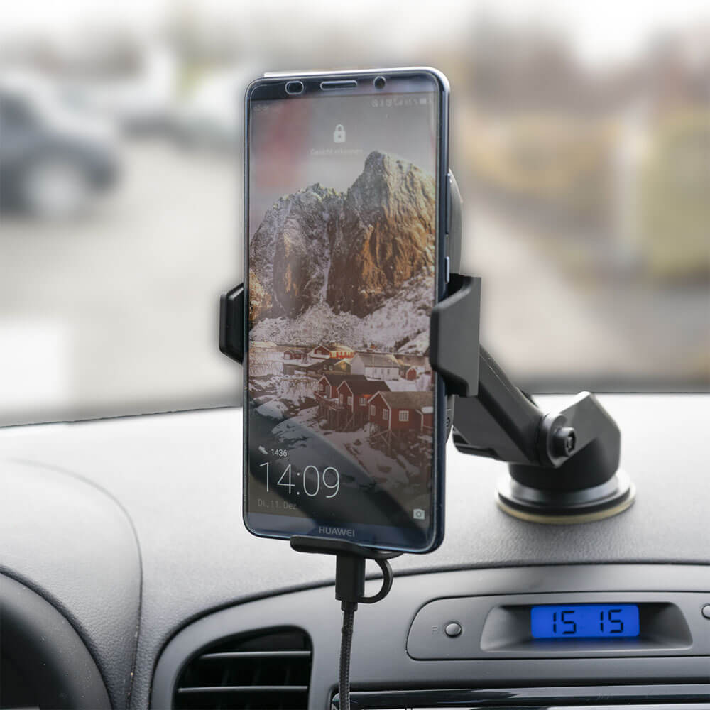 - Стилна и практична универсална поставка за кола с възможност за безжично зареждане за QI съвместими смартфони