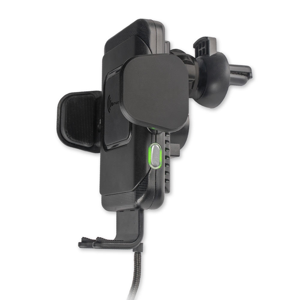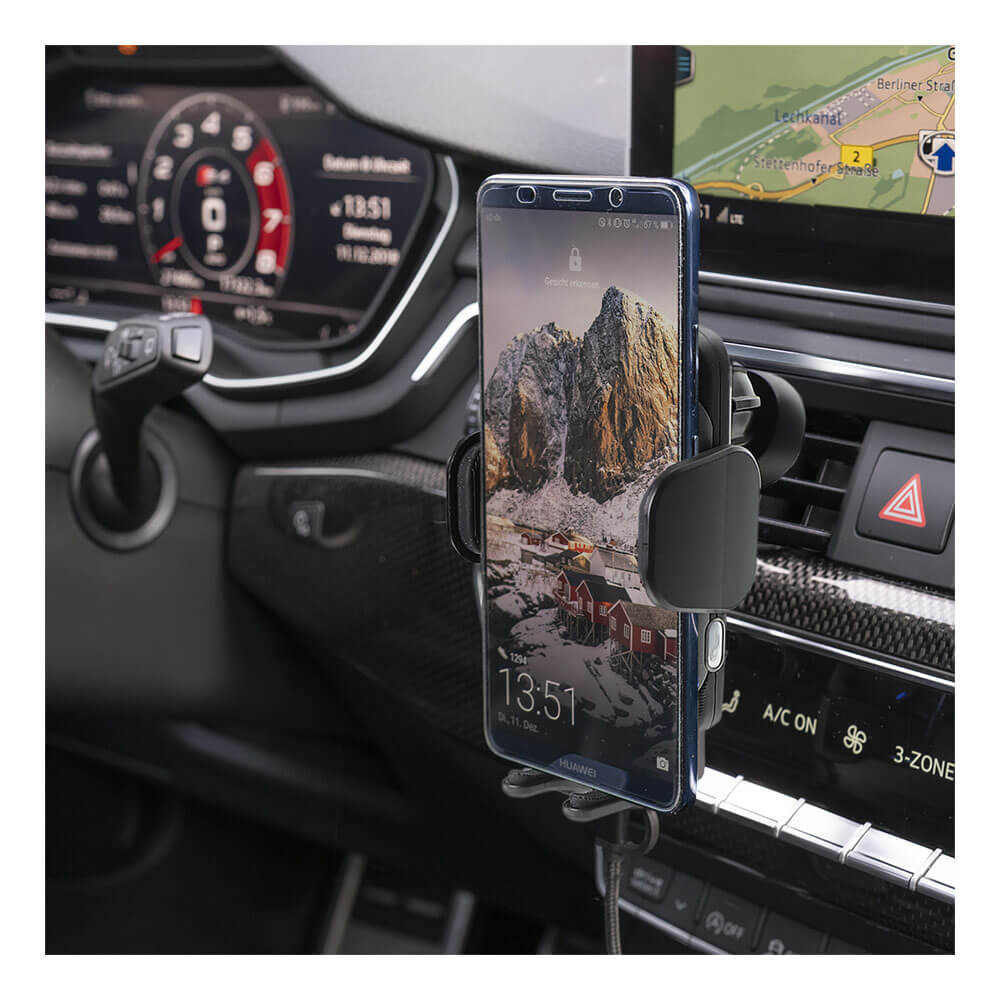 - Стилна и практична универсална поставка за кола с възможност за безжично зареждане за QI съвместими смартфони