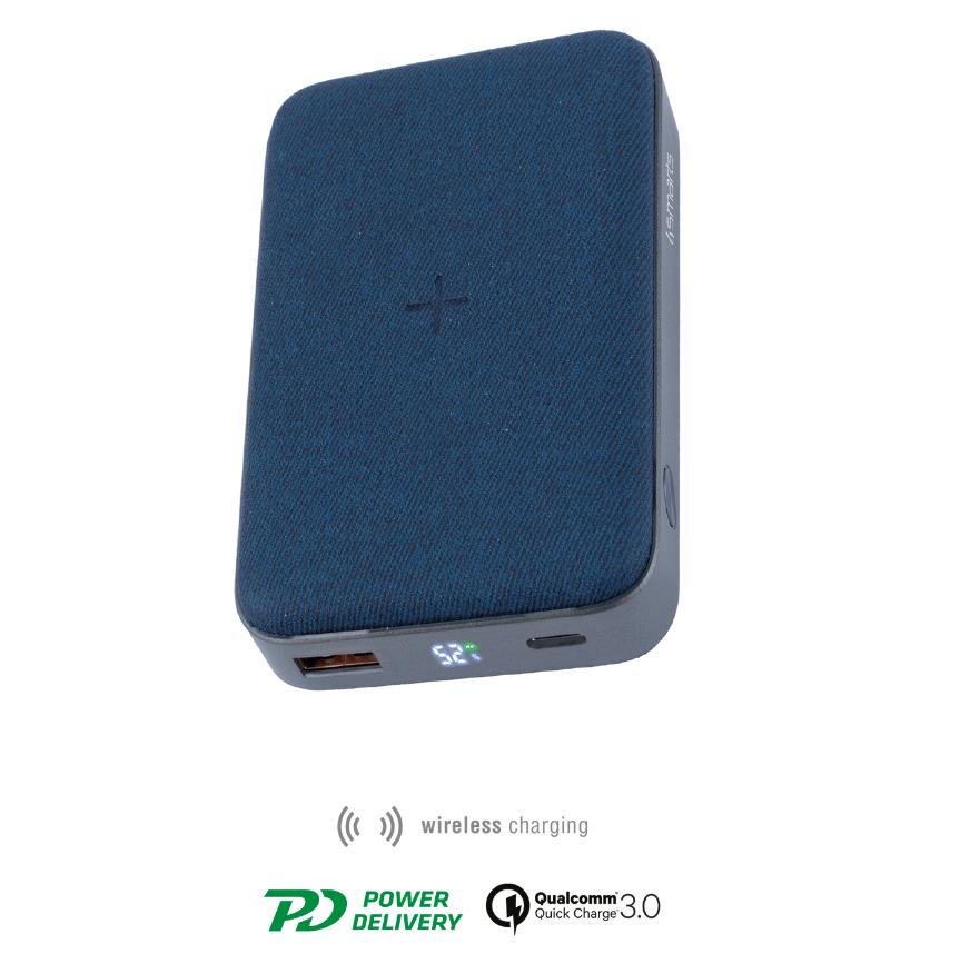 4smarts Inductive Power Bank VoltHub Ultimate 10000 mAh - външна батерия с USB-C изход с възможност за безжично зареждане и технология за бързо зареждане (син-сив)