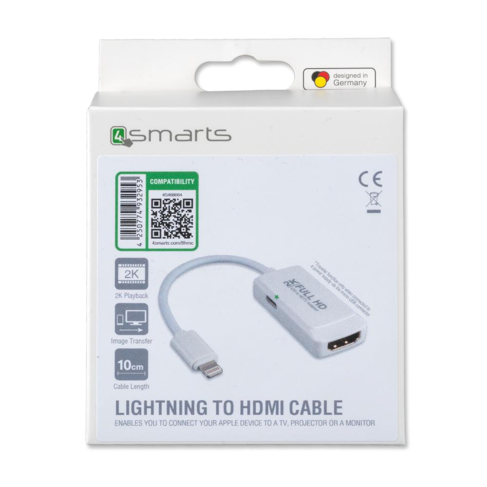 4smarts Lightning to HDMI Adapter - адаптер за свързване от Lightning към HDMI вход за мобилни устройства с Lightning (бял)