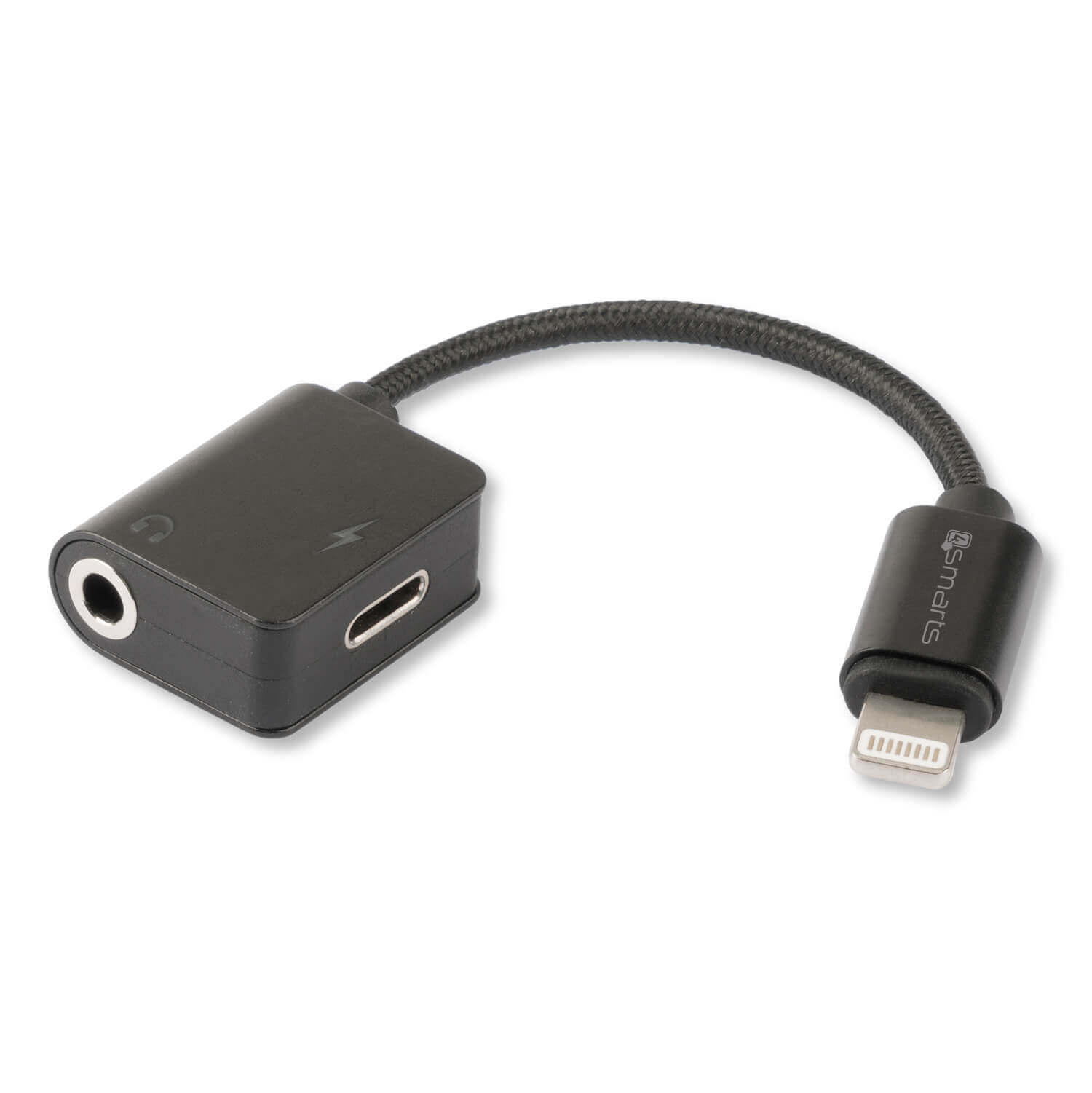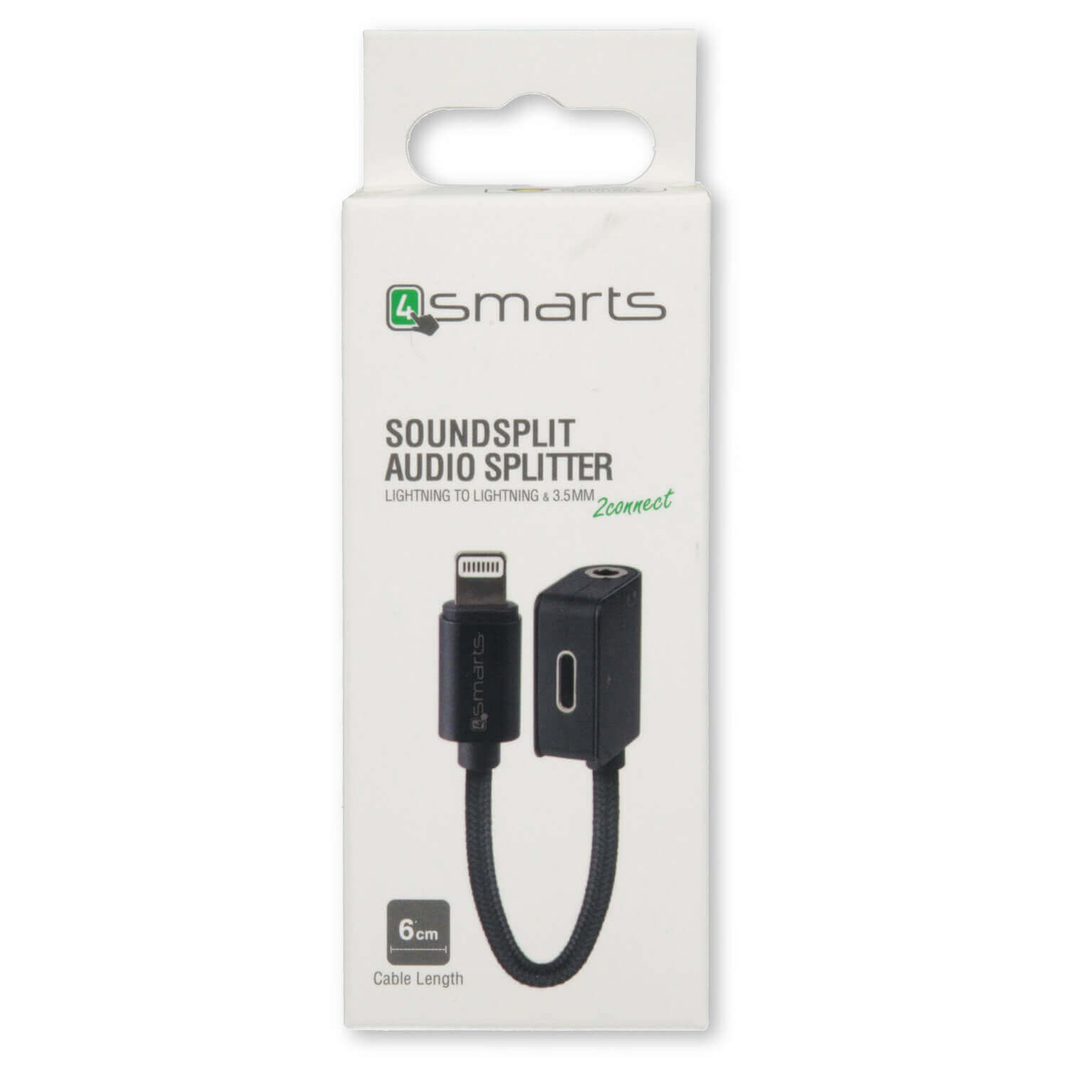 4smarts Lightning to Lightning & 3.5mm Audio Splitter SoundSplit - Lightning адаптер към 3.5 аудио изход и Lightning изход (12см) (черен)