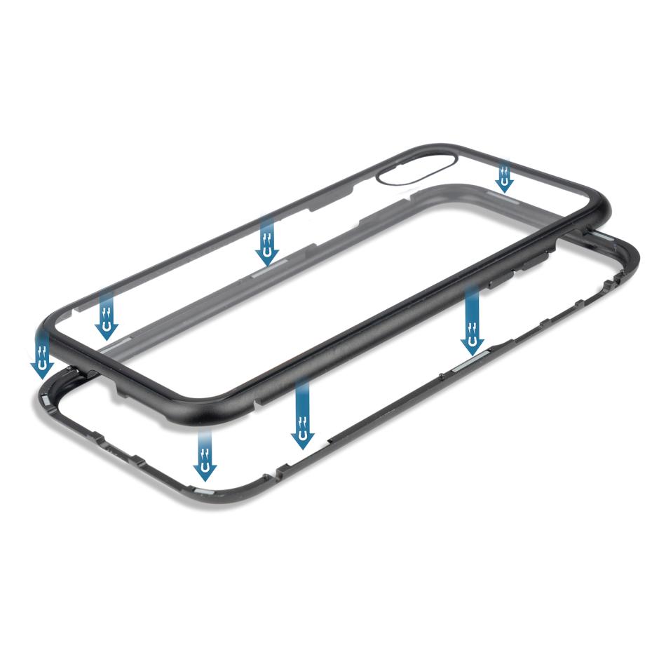 - Външната алуминиева част, разполага с 16 магнита разположени, така че да ''затворят'' здраво бъмпера и задната стъклена част