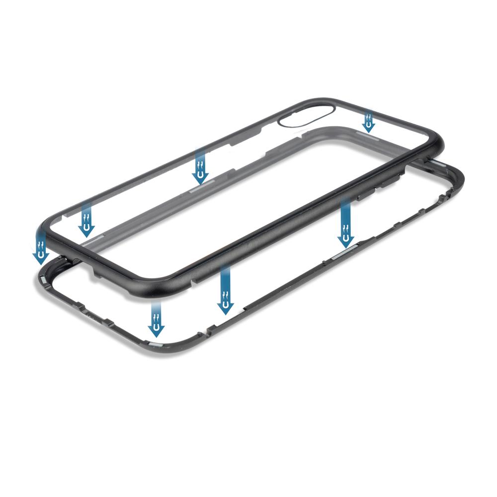 - Външната алуминиева част, разполага с 16 магнита разположени, така че да ''затворят'' здраво бъмпера и задната стъклена част