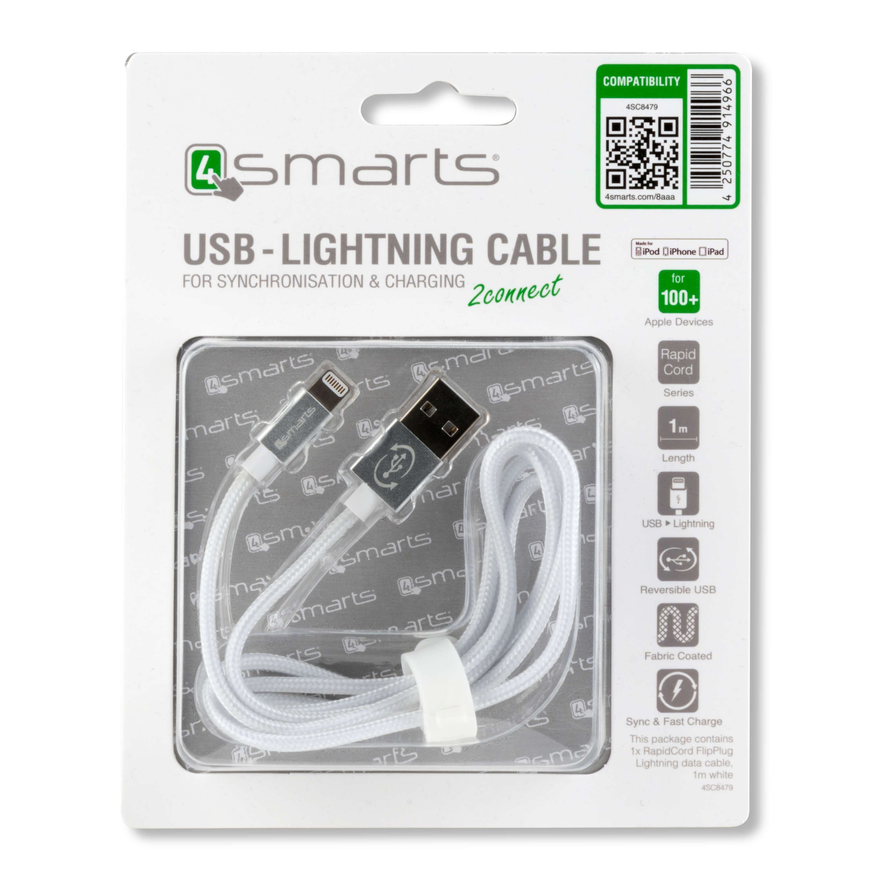 4smarts MFI RapidCord FlipPlug Lightning Data Cable 1m. - сертифициран lightning кабел (100 см.) за iPhone, iPad и iPod с Lightning вход (бял)