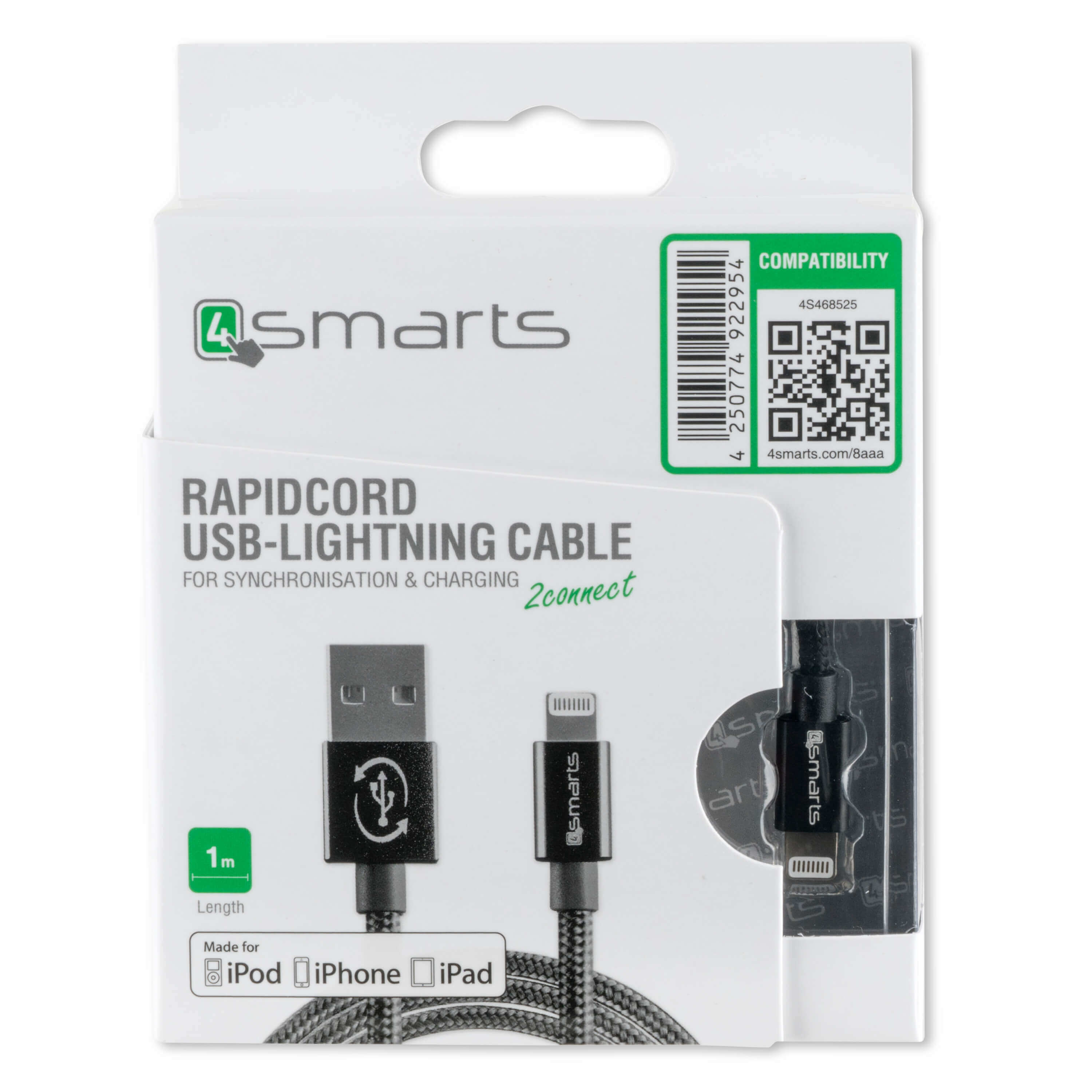4smarts MFI RapidCord FlipPlug Lightning Data Cable 1m. - сертифициран lightning кабел (100 см.) за iPhone, iPad и iPod с Lightning вход (черен)