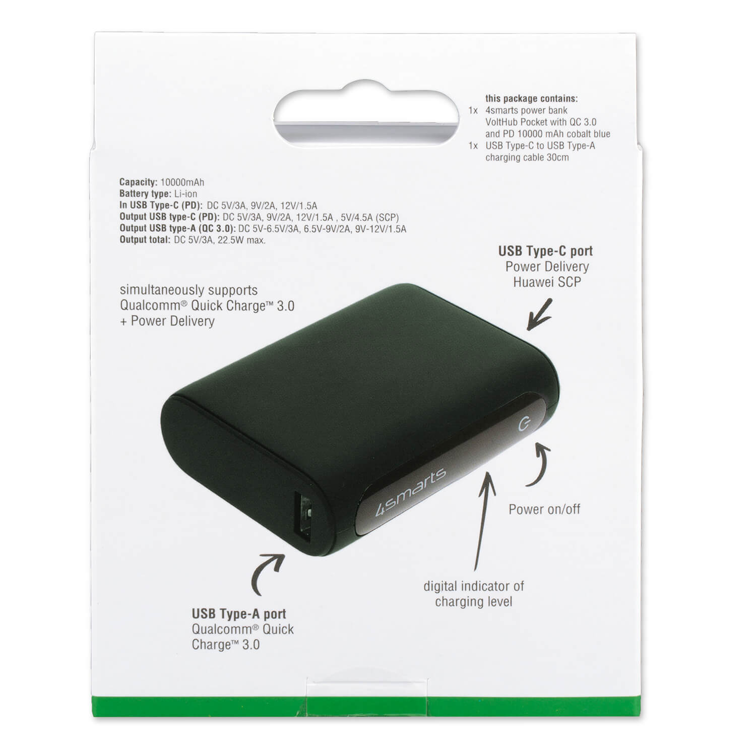 4smarts Power Bank VoltHub 10000 mAh PD and QC 3.0 - външна батерия с два USB и USB-C изходи и технология за бързо зареждане (тъмнозелен)