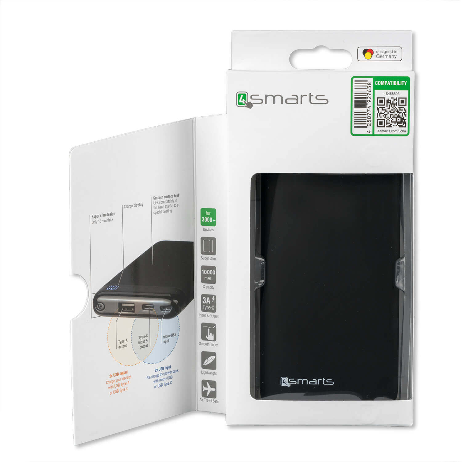4smarts Power Bank VoltHub 10000 mAh Power Delivery and QQC 3.0 - външна батерия с два USB и USB-C изходи и технология за бързо зареждане (черен)