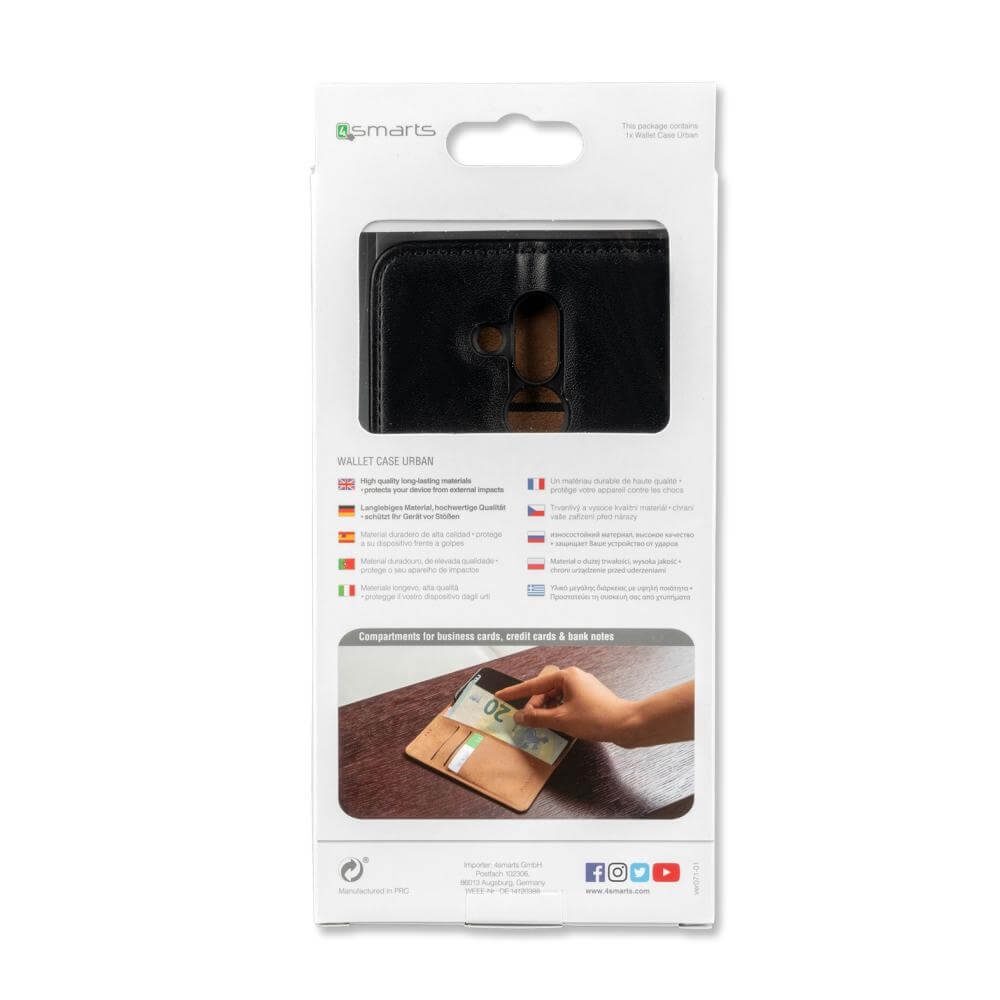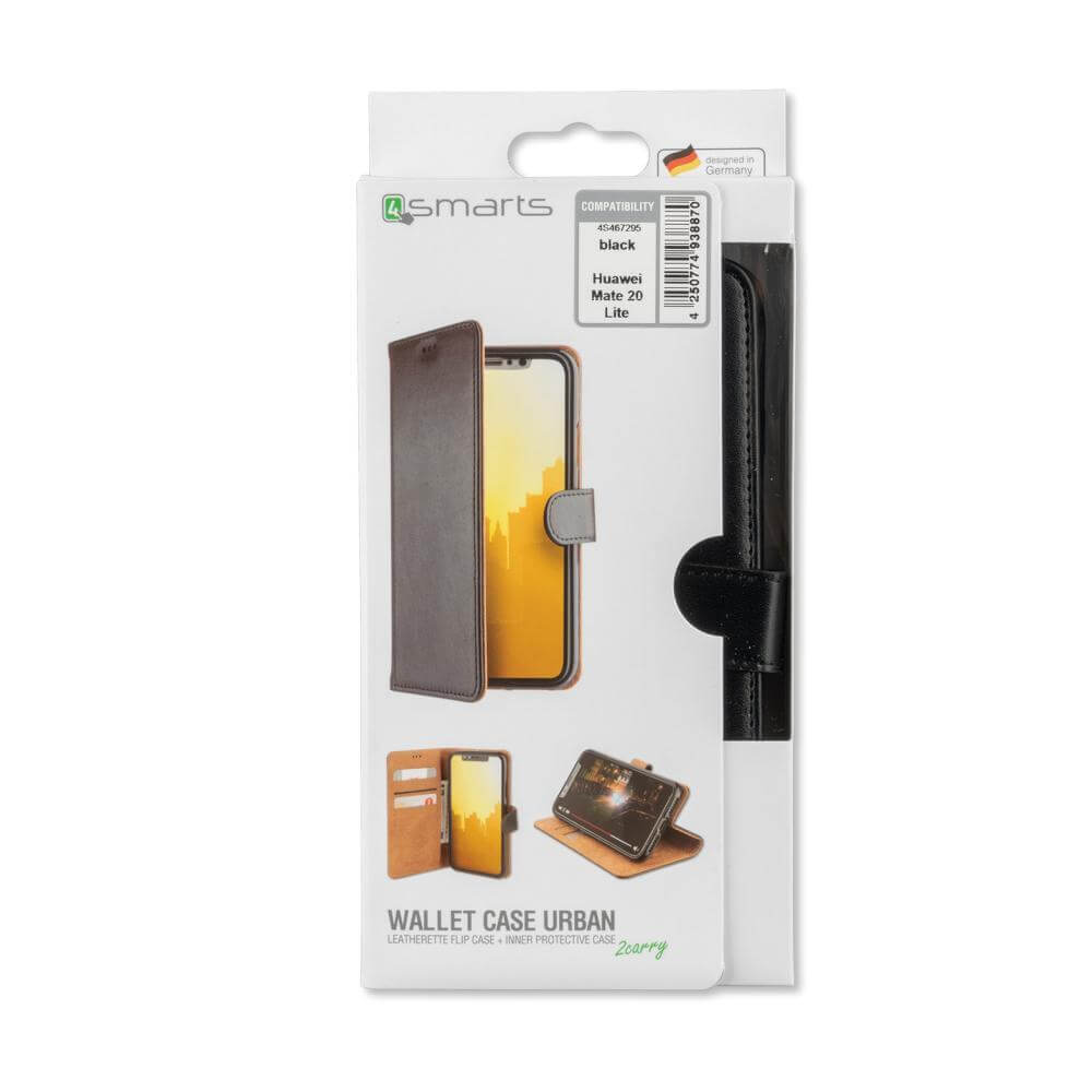 4smarts Premium Wallet Case URBAN - кожен калъф с поставка и отделение за кр. карта за Huawei Mate 20 (черен)