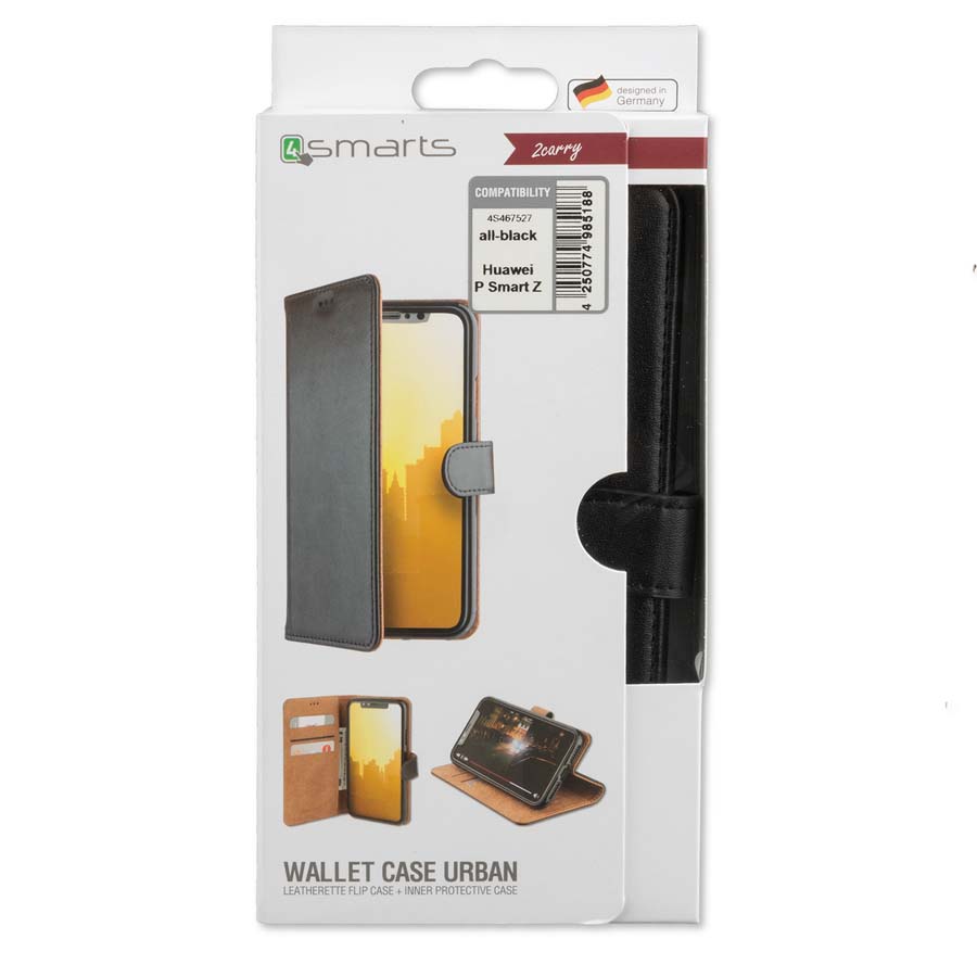 4smarts Premium Wallet Case URBAN - кожен калъф с поставка и отделение за кр. карта за Huawei P Smart Z (черен)