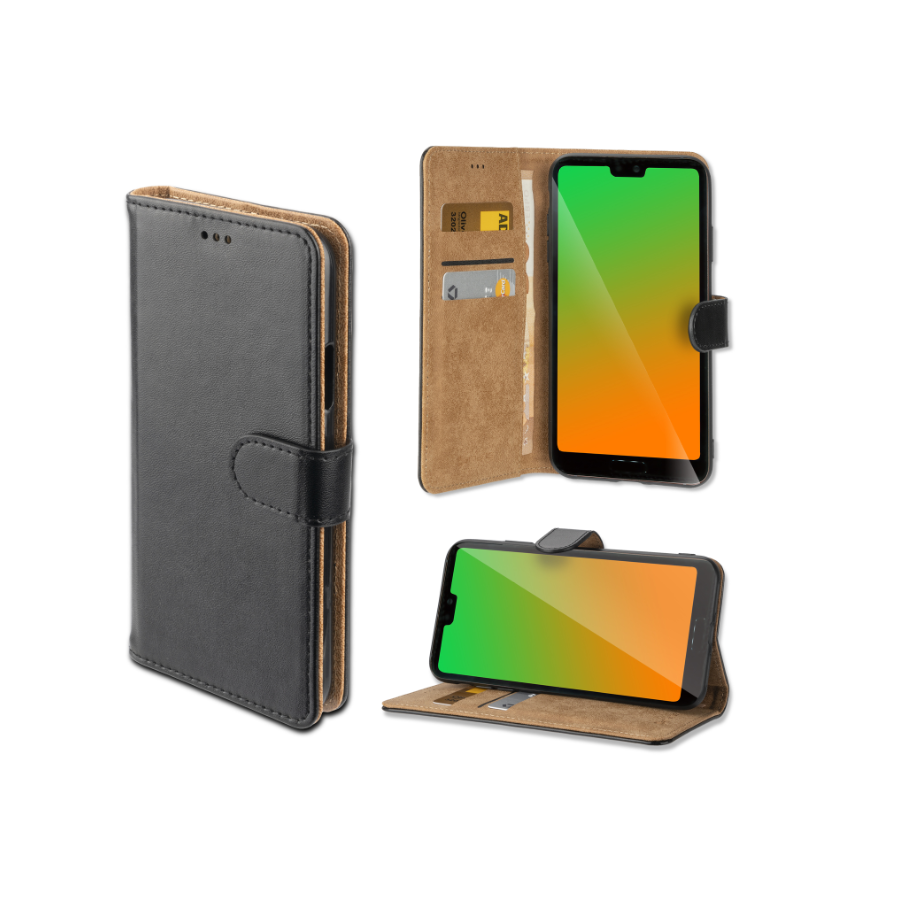 4smarts Premium Wallet Case URBAN - кожен калъф с поставка и отделение за кр. карта за Huawei P20 (черен)