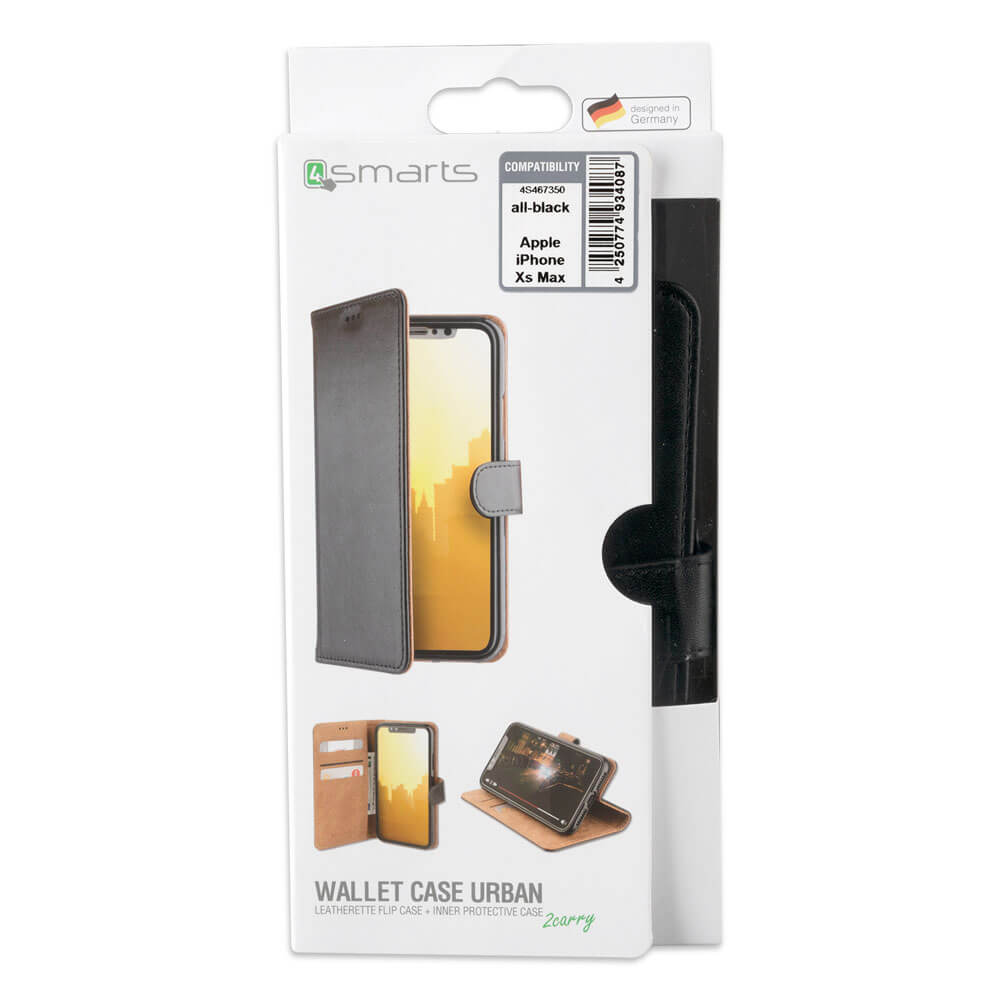 4smarts Premium Wallet Case URBAN - кожен калъф с поставка и отделение за кр. карта за iPhone XS Max (черен)