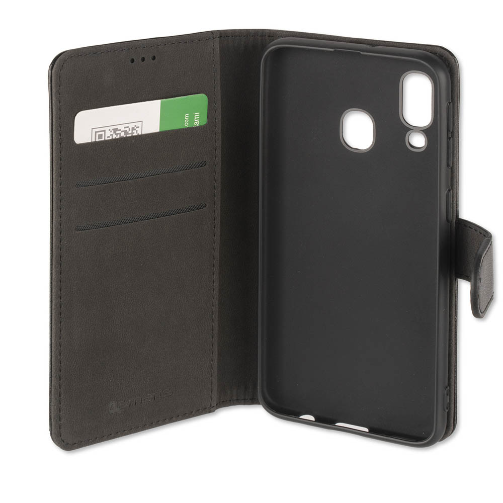 4smarts Premium Wallet Case URBAN - кожен калъф с поставка и отделение за кр. карта за Samsung Galaxy A40 (черен)