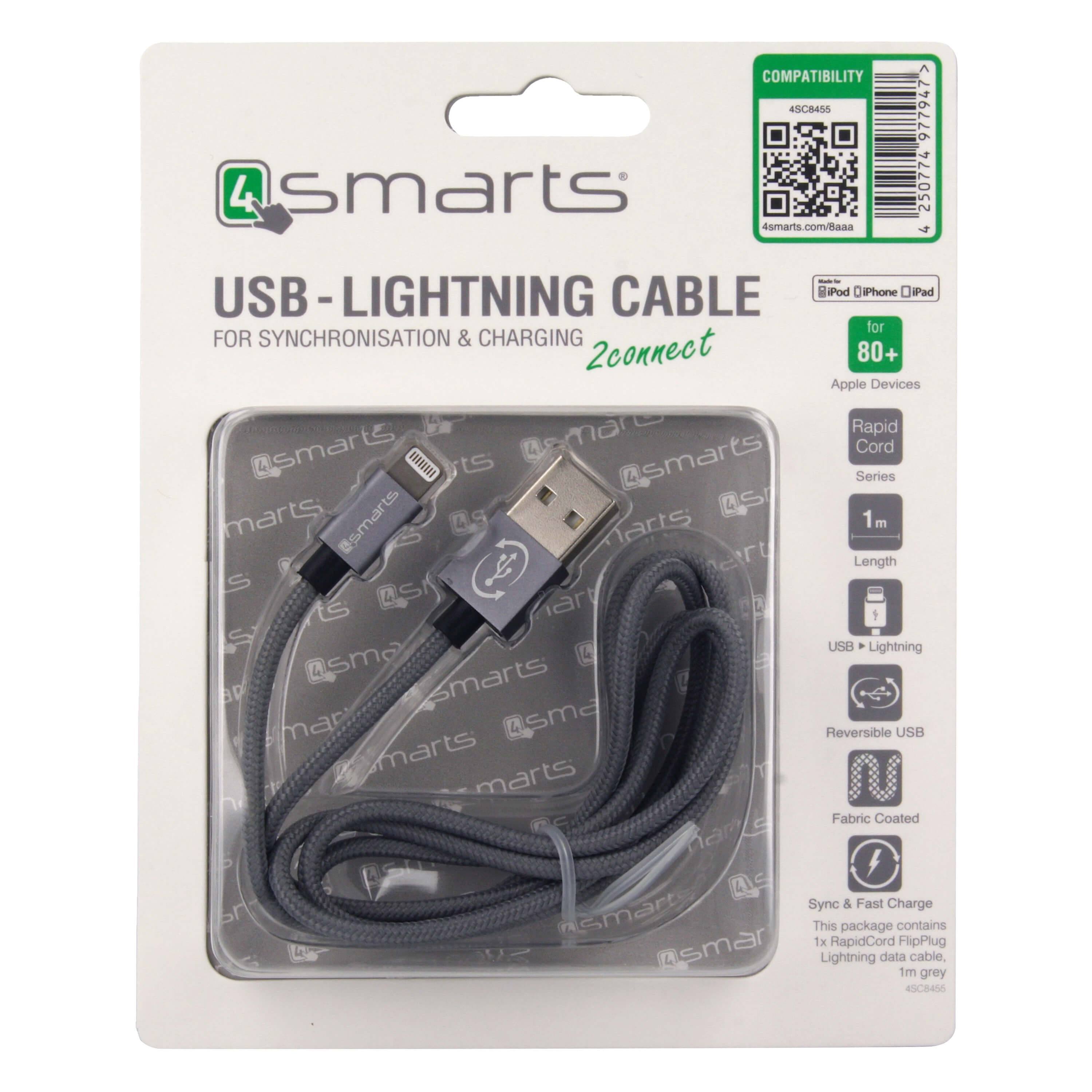 4smarts MFI RapidCord FlipPlug Lightning Data Cable 1m. - сертифициран lightning кабел (100 см.) за iPhone, iPad и iPod с Lightning вход (сив)