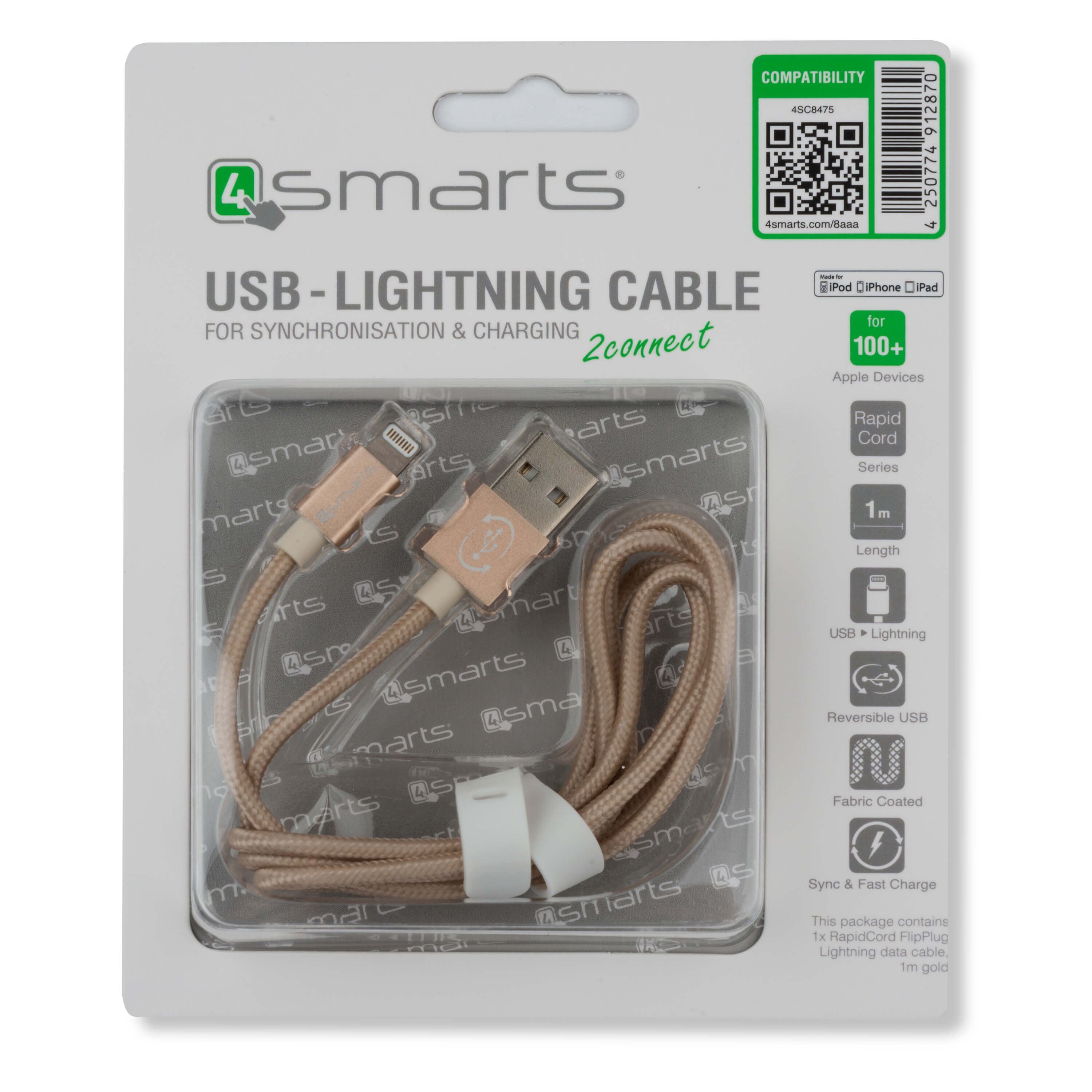 4smarts MFI RapidCord FlipPlug Lightning Data Cable 1m. - сертифициран lightning кабел (100 см.) за iPhone, iPad и iPod с Lightning вход (златист)