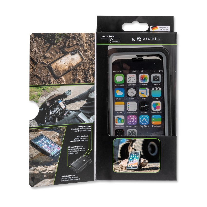 - Благодарение на специалната Active Pro система и голямото разнообразие от адаптери и поставки пасващи перфектно към този калъф, може да го фиксирате сигурно и безопасно