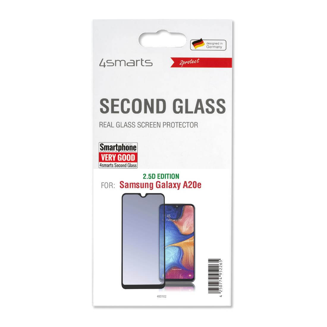 4smarts Second Glass 2.5D Colour Frame - калено стъклено защитно покритие с извити ръбове за целия дисплей на Samsung Galaxy A20e (черен-прозрачен)