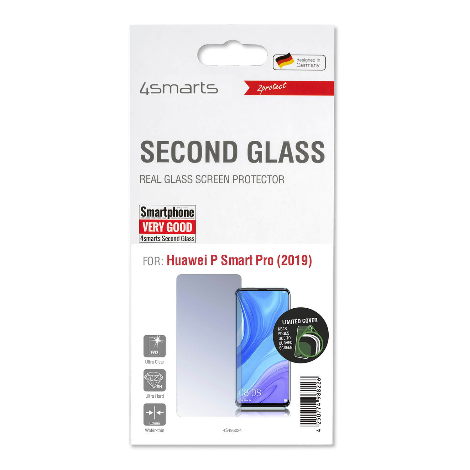 4smarts Second Glass 2D Limited Cover - калено стъклено защитно покритие за дисплея на Huawei P Smart Pro (2019) (прозрачен)