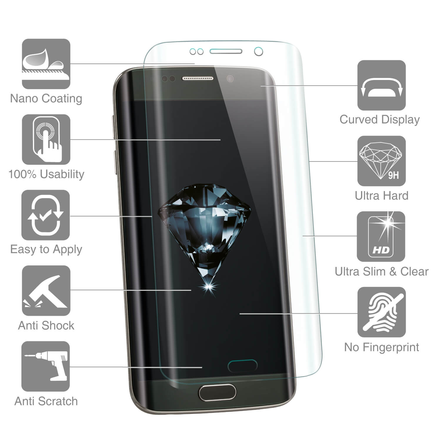 § Технология за устойчивост срещу пръстови отпечатъци (задържат се по-малко отпечатъци, отколкото обикновените стъклени протектори)