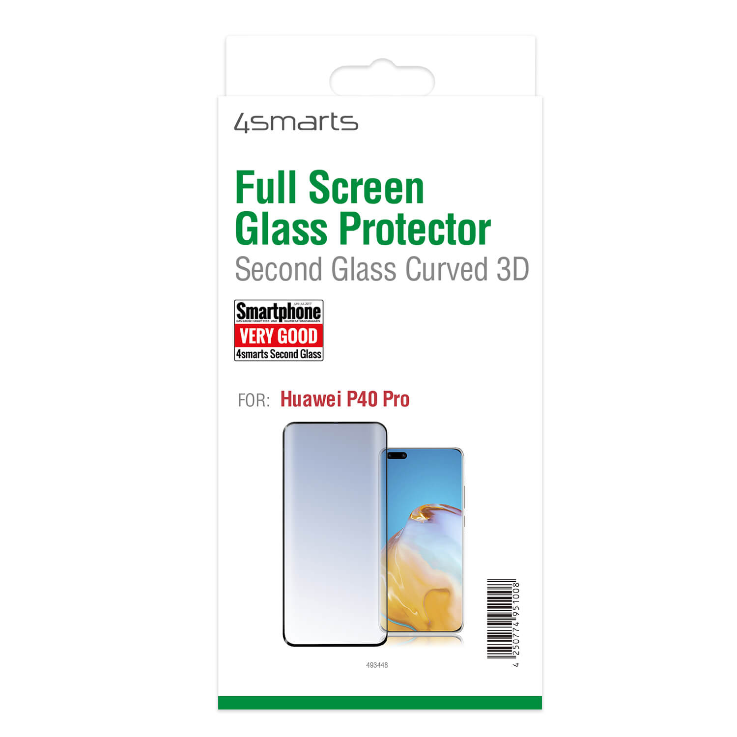 4smarts Second Glass Curved 3D - калено стъклено защитно покритие с извити ръбове за целия дисплей на Huawei P40 Pro (черен-прозрачен)