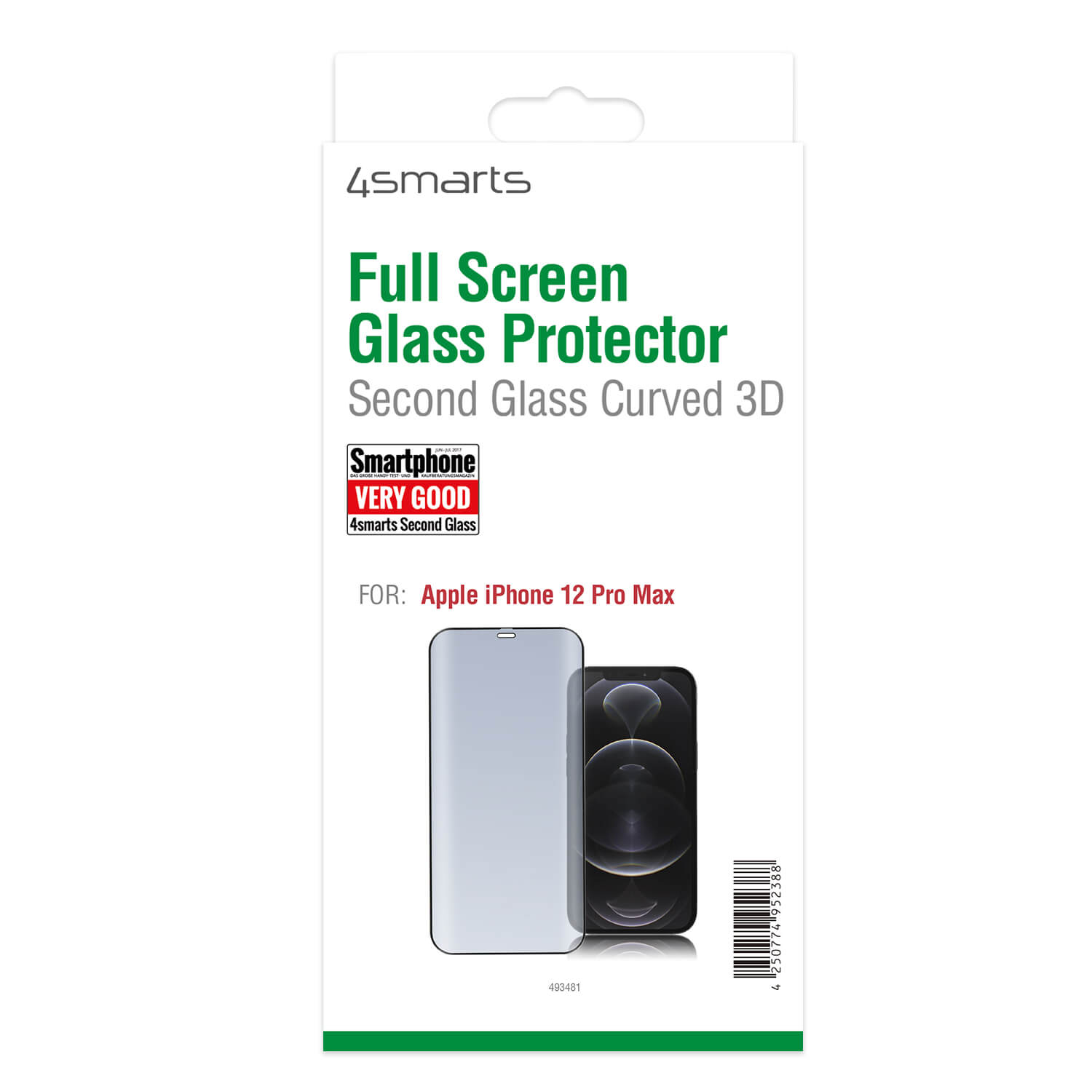 4smarts Second Glass Curved 3D - калено стъклено защитно покритие с извити ръбове за целия дисплея на iPhone 12 Pro Max (черен-прозрачен)