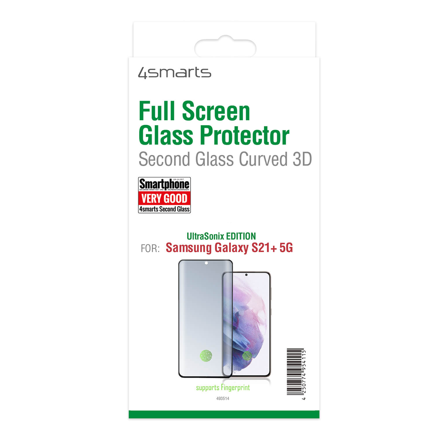 4smarts Second Glass Curved 3D UltraSonix - калено стъклено защитно покритие с извити ръбове за Samsung Galaxy S21 Plus (черен-прозрачен)