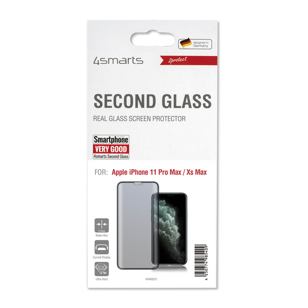 4smarts Second Glass Curved - калено стъклено защитно покритие с извити ръбове за целия дисплея на iPhone 11 Pro Max, iPhone XS Max (прозрачен-черен)