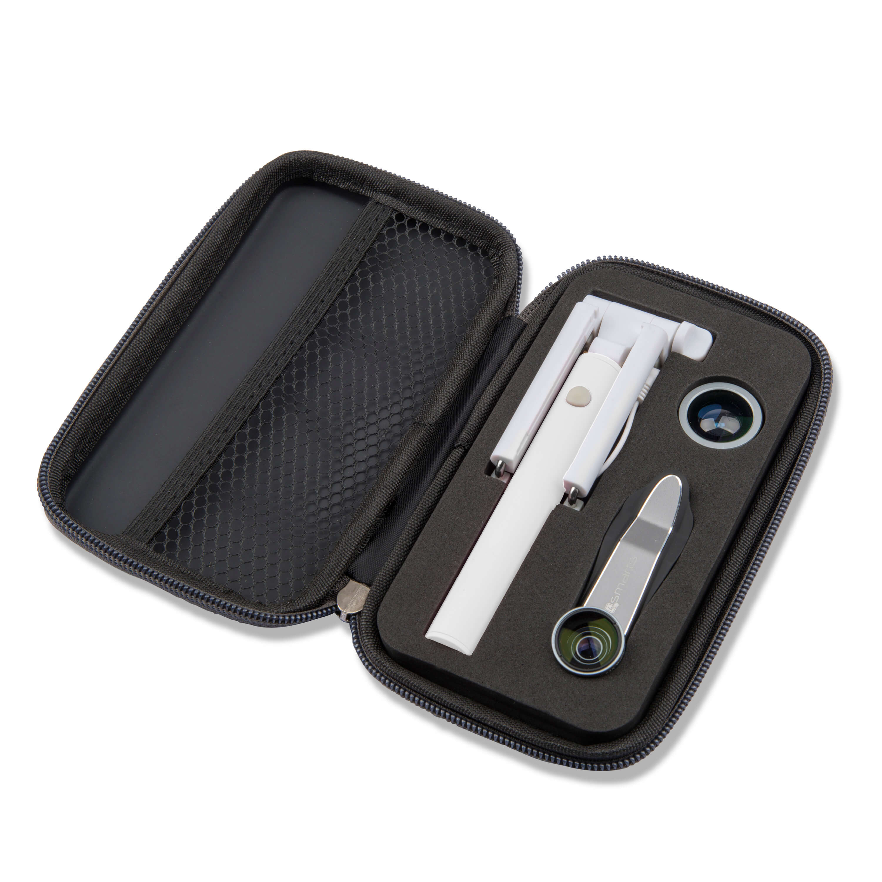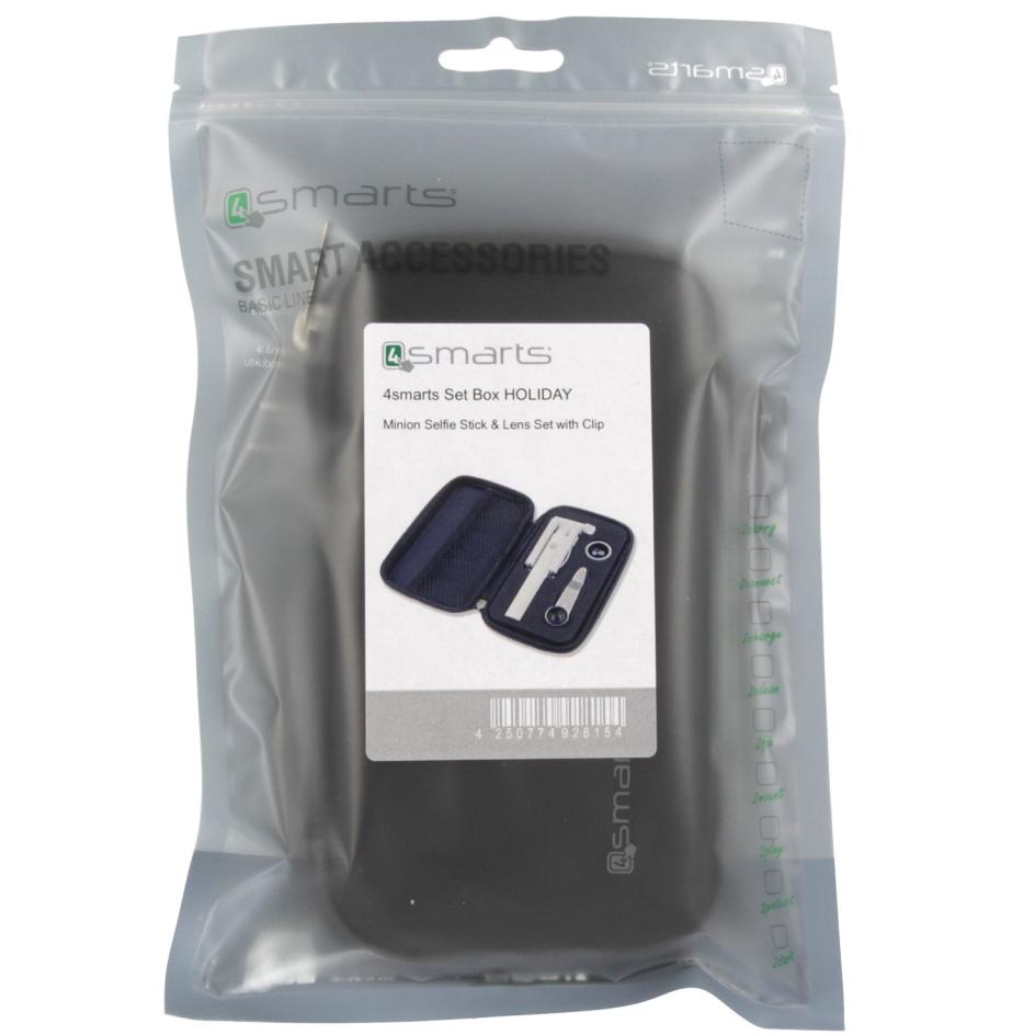 4smarts Set Box HOLIDAY - комплект селфи стик и качествени лещи Fish Eye, Wide Angle и Macro за смартфони и таблети (бял)