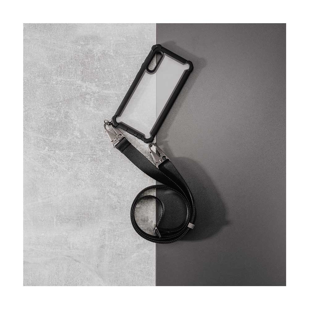 4smarts Sling Case Downtown - удароустойчив хибриден кейс с лента за врата за iPhone 11 Pro (черен-прозрачен)
