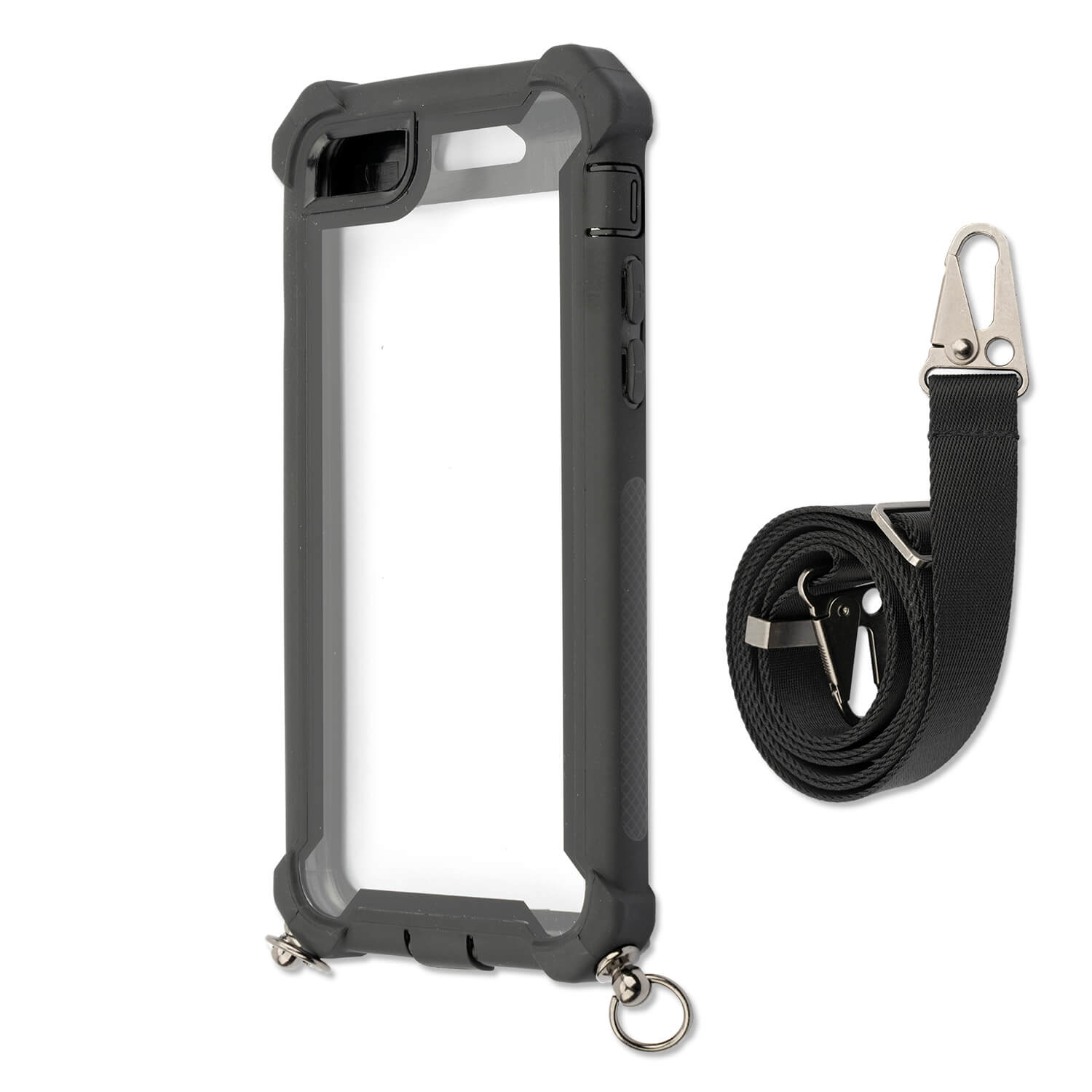 4smarts Sling Case Downtown - удароустойчив кейс с лента за врата за iPhone SE (2020), iPhone 8, iPhone 7 (черен-прозрачен)
