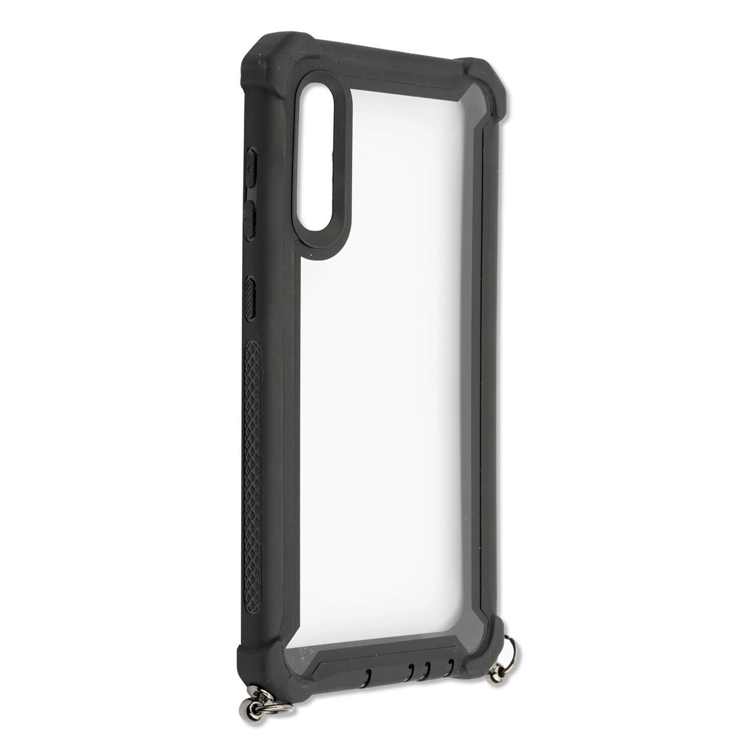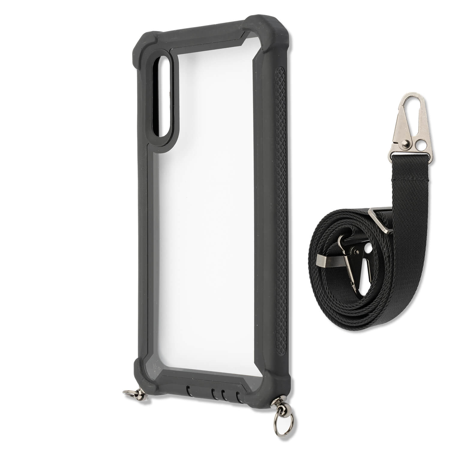 4smarts Sling Case Downtown - удароустойчив кейс с лента за врата за Samsung Galaxy A50 (черен-прозрачен)