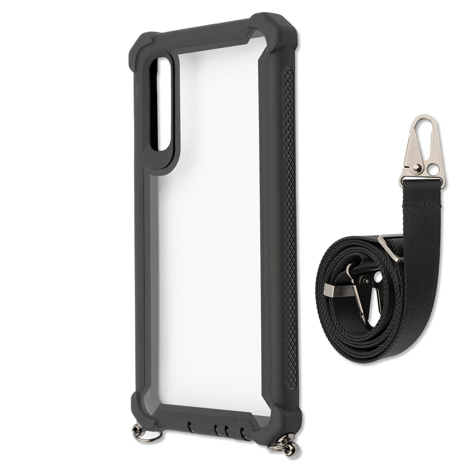 4smarts Sling Case Downtown - удароустойчив кейс с лента за врата за Samsung Galaxy A70 (черен-прозрачен)